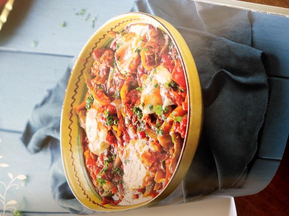 Je ne connais pas la culture Algérienne mais j'ai choisi une recette de tchoutchouka ragoût de légumes servi avec des oeufs. Cette recette est tirée du livre de Catherine Schiellein. c'est une recette avec des poivrons, des tomates, piment et cumin et de l'huile d'olive de Kabylie.
