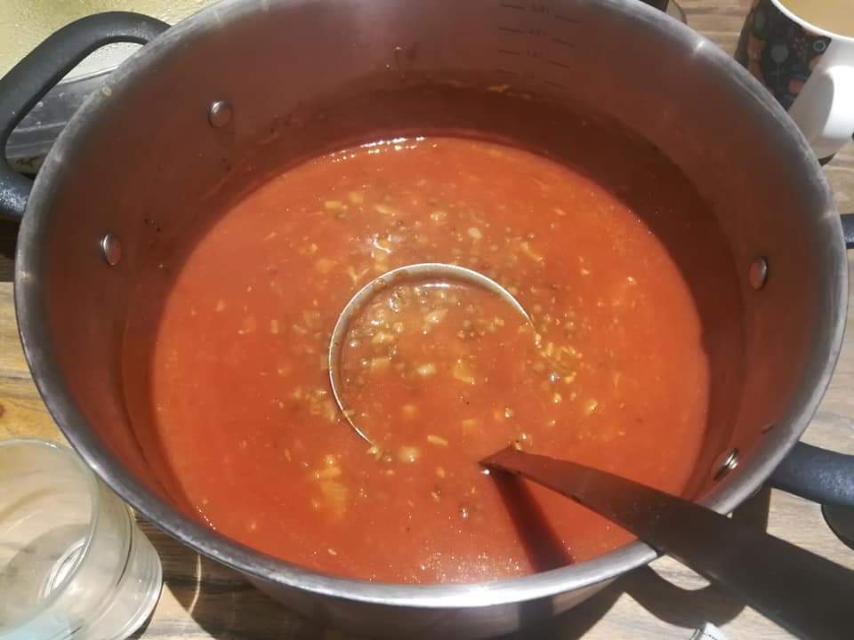 - 2 grosses louches de pupe de tomate (solanum lycopersicum, fam.solanaceae, orig. Amérique du Sud)