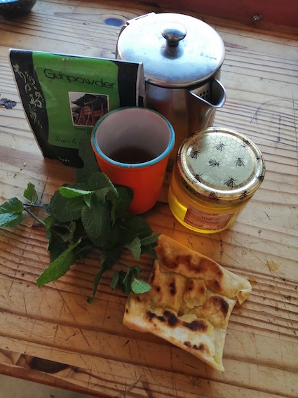 Pour l'accompagner un thé vert à la menthe Nahnah ainsi que du miel de lavande