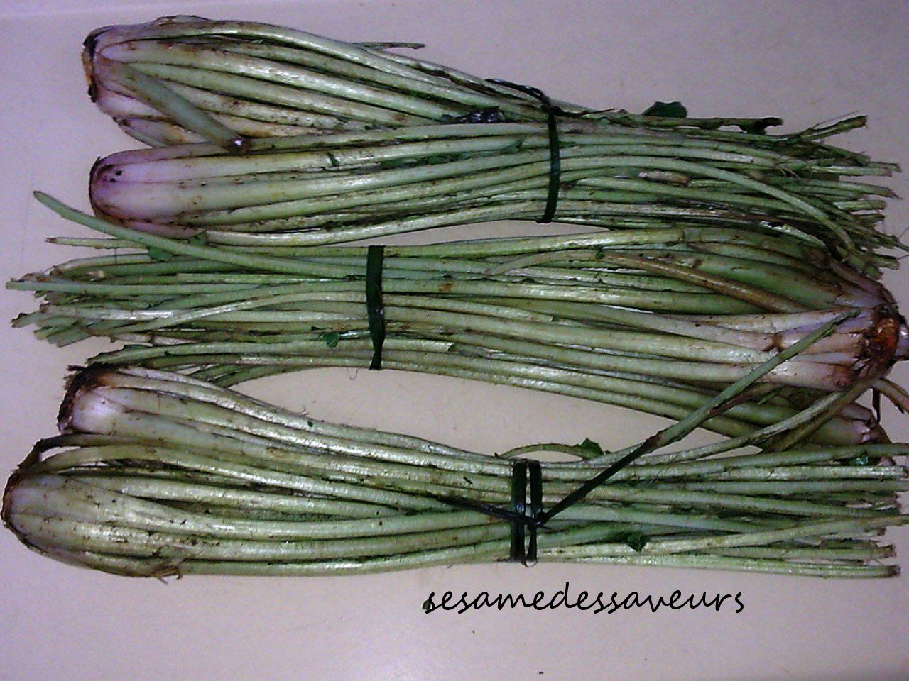 - Utilisation : La plante qui contient de l'inuline est comestible : on peut consommer les jeunes pousses en salade et les racines cuites en ragout. En Algérie, on consomme les pétioles ("tiges" de la feuille, ou plus exactement nervure principale) cuits dans le bouillon qui accompagne le couscous. C'est aussi une mauvaise herbe.