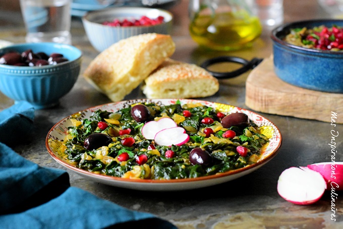 La salade de khobize est une recette traditionnelle algérienne qui utilise comme base des feuilles de mauve (famille des malvacées) équeutées et découpées. Revenues dans de l'huile d'olive et agrémentées d'ail, de piment et de cumin, elles forment une recette intégralement végétale, qu'on peut reproduire facilement avec de la mauve locale !
