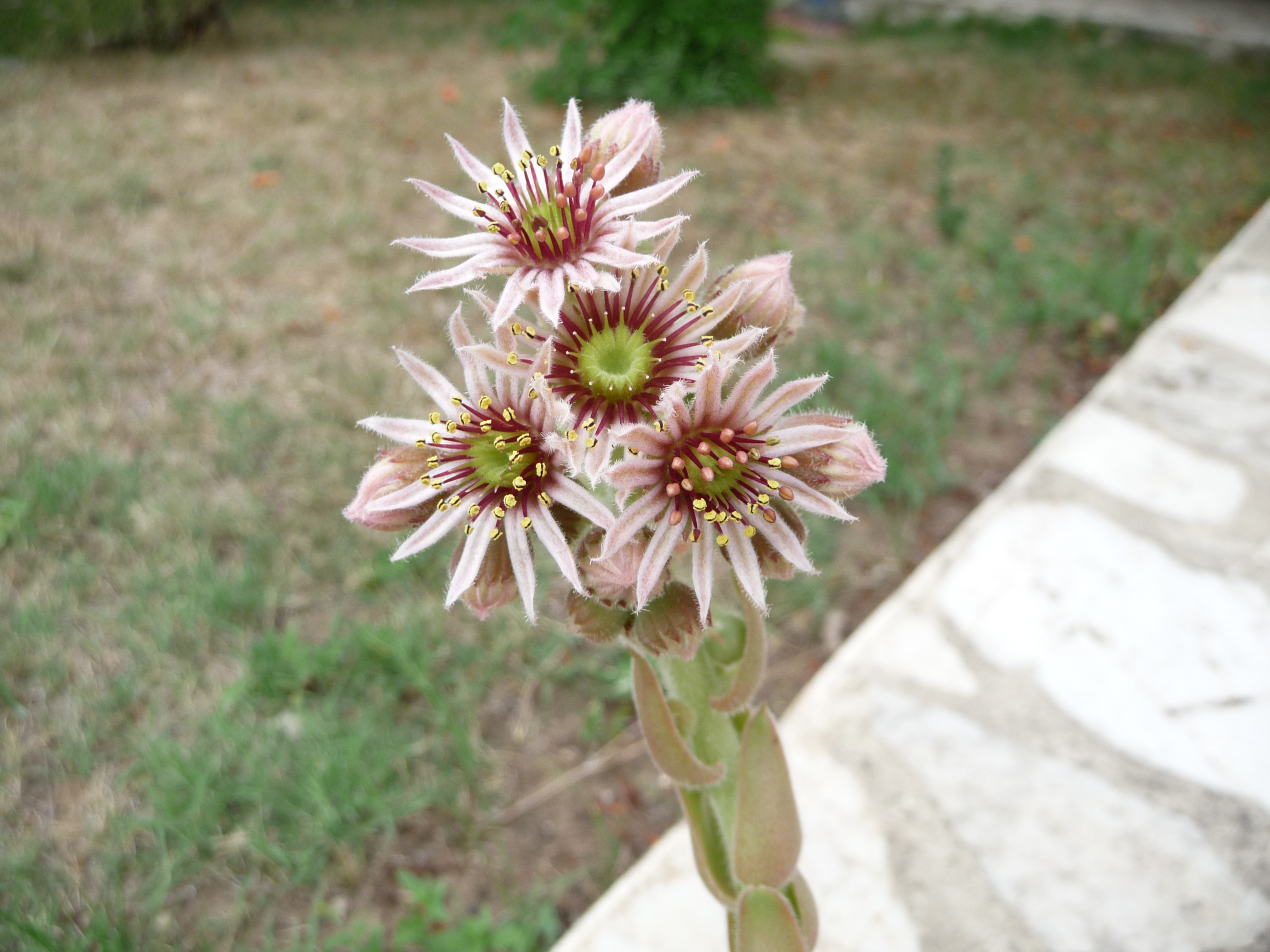 Bonjour Gary, les Joubarbes (Sempervivum ssp.) se multiplient végétativement par stolons pour former des touffes serrées de rosettes de feuilles crassulescentes. Chaque rosette prend très vite son indépendance et vit entourée de ses sœurs dans une sorte de compétition pour arriver à fleurir. Cela peut prendre quelques années. Lorsque la multiplication végétative et colonisatrice subit un stress hydrique, les rosettes suffisamment armées tablent sur une multiplication sexuée par la production d'une inflorescence. Les joubarbes étant monocarpiques, chaque rosette ne peut fleurir qu'une seule fois. Autrement dit elle s'épuise à fleurir et laisse sa dépouille en nutrition aux autres rosettes. Très joli exemple de souplesse adaptative aux conditions (surtout hydriques et thermiques). Je suis très curieux d'entendre d'autres réponses à votre question.
