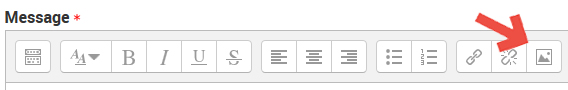 Pour intégrer une image dans vos messages, cliquez sur l'icône avec la petite montagne dans la barre d'outil de rédaction des messages.