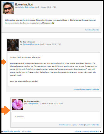 Je trouve que l'affichage des discussions-forum en mode "Réponses emboîtées" est très pratique dans certains cas.