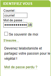 Merci pour votre participation au MOOC 2018. C'est une bonne initiative d'aller prospecter dans les bases de données que nous offre Telabotanica pour cela il va falloir vous connecter. En effet il faut vous identifier dans l'onglet dédié à cette action.