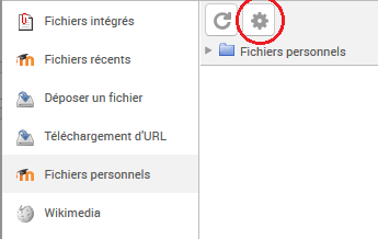 Elle est accessible via le bouton (roue dentée) "Gestion" de l'option "Fichiers personnels" dans la fenêtre d'ajout d'images.