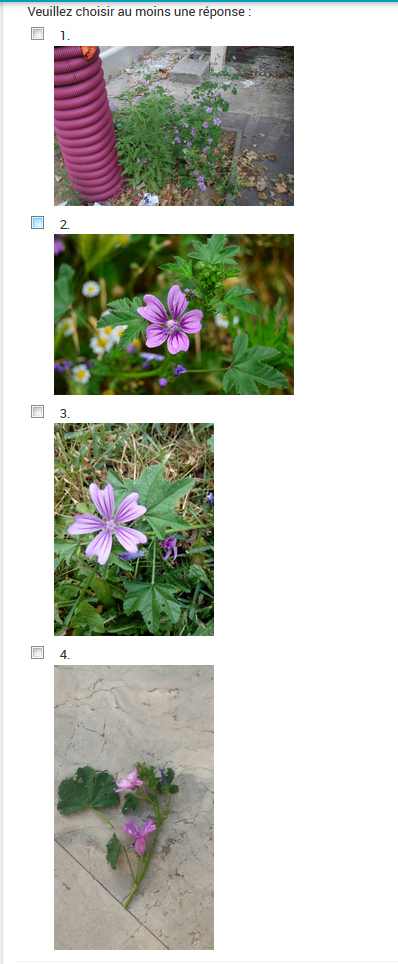 Il y a un problème d'affichage des deux premières images dans le quiz de la séquence une. Je ne peux pas vérifier si la photo est donc bonne et nette pour permettre l'identification.