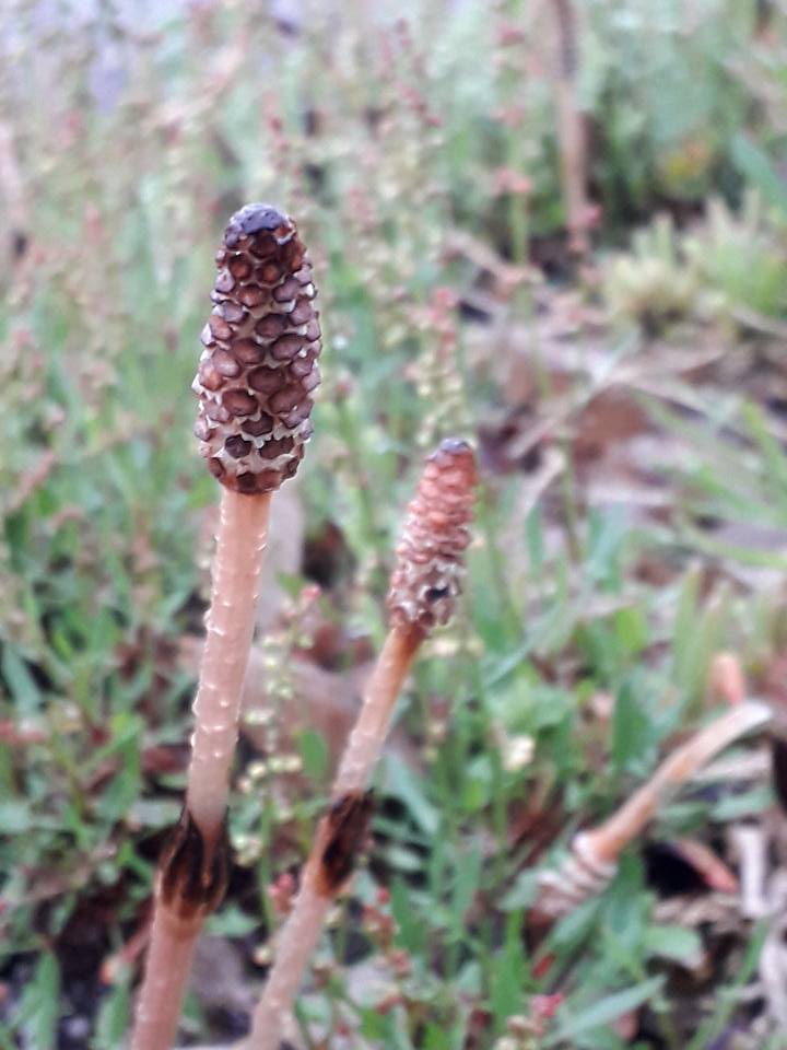 il s'agit de la tige reproductive de la prèle, et non de la tige végétative, qui sortira un peu plus tard, et qui sera toute verte.