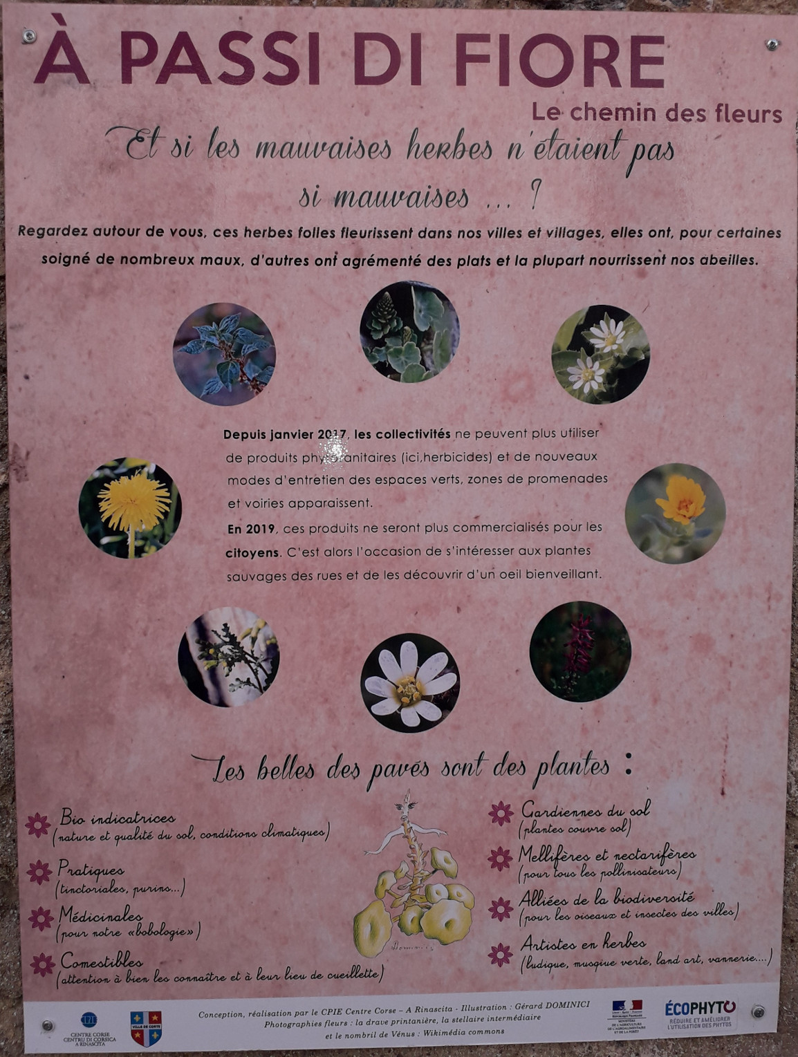 De retour d'un petit séjour en Corse, j'ai pensé au Mooc botanique en prenant ces photos d'affiches sur un mur près de la citadelle de Corte.