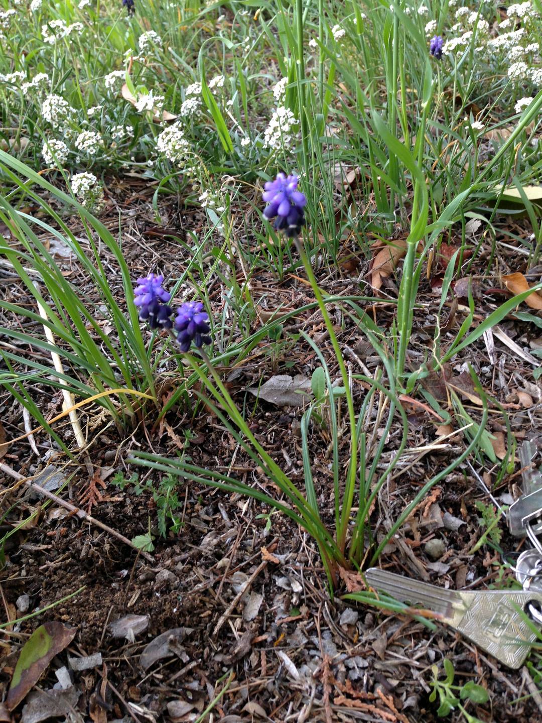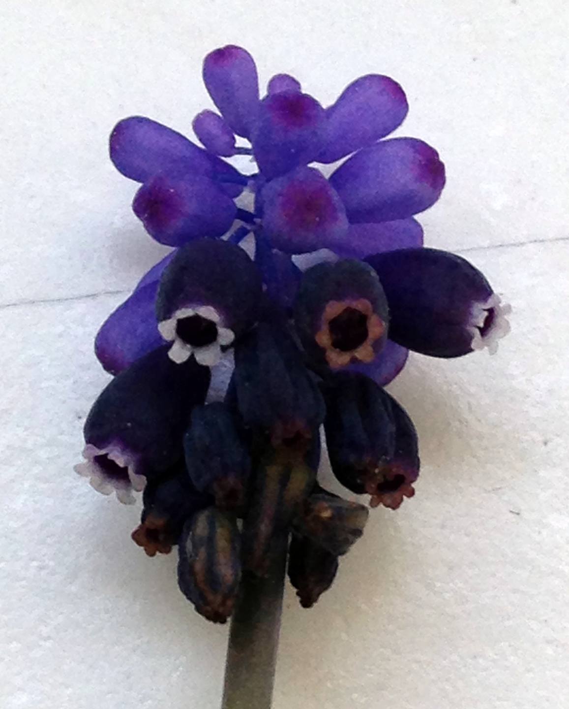 voilà l'espèce de muscari qui pousse dans le parc de mon lycée, à Marseille. Les photos prises avec mon téléphone sont de ce matin (le 30 mars), il y avait un peu de vent annonciateur de l'orage à venir, elles ne sont donc pas super nettes surtout que la plante ne dépasse pas 15 cm...