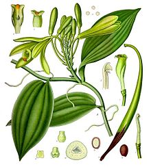La vanille est une épice constituée par le fruit de certaines orchidées lianescentes tropicales d'origine mésoaméricaine du genre Vanilla, principalement de l'espèce Vanilla planifolia.