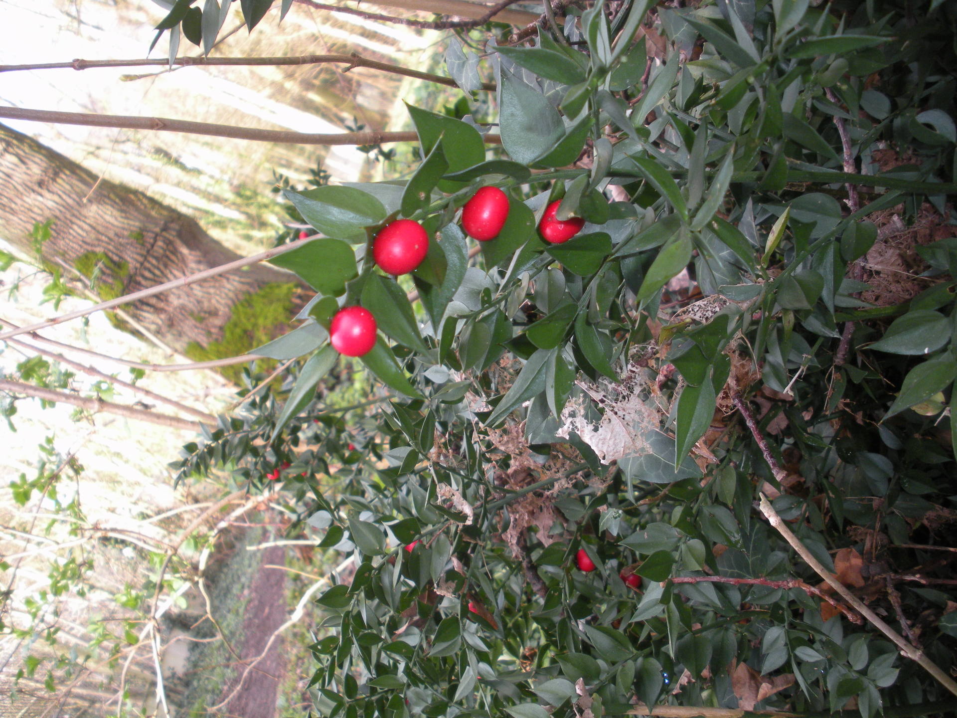 je ne sais pas pourquoi mais ma photo n'est pas dans le bon sens ??? Bon, passons aux détails après cette vue générale... Au cours de ma balade je suis tombée d'abord sur un arbre femelle...et oui... chez le houx il y a des mâles et des femelles... j'ai appris qu'on dit qu'il est dioïque !! et sur le premier que j'ai rencontré, il y avait des fruits, donc femelle