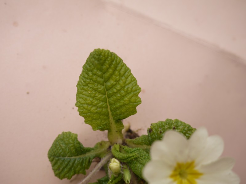 Tige rougeâtre , 10 à 20 cm, poilue, porte des petites feuilles arrondie et crantée ,alternees,