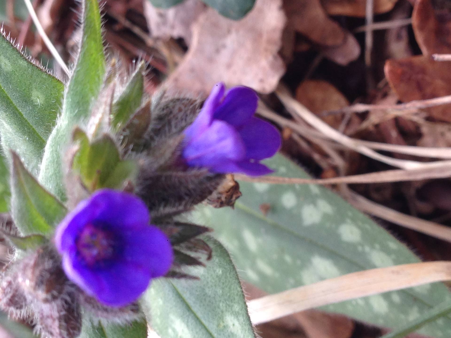 Photos prises dans le fond de mon jardin (au nord de la Loire-Atlantique) le 02/04/18. J'aime la couleur des fleurs et les tâches blanches sur les feuilles.
