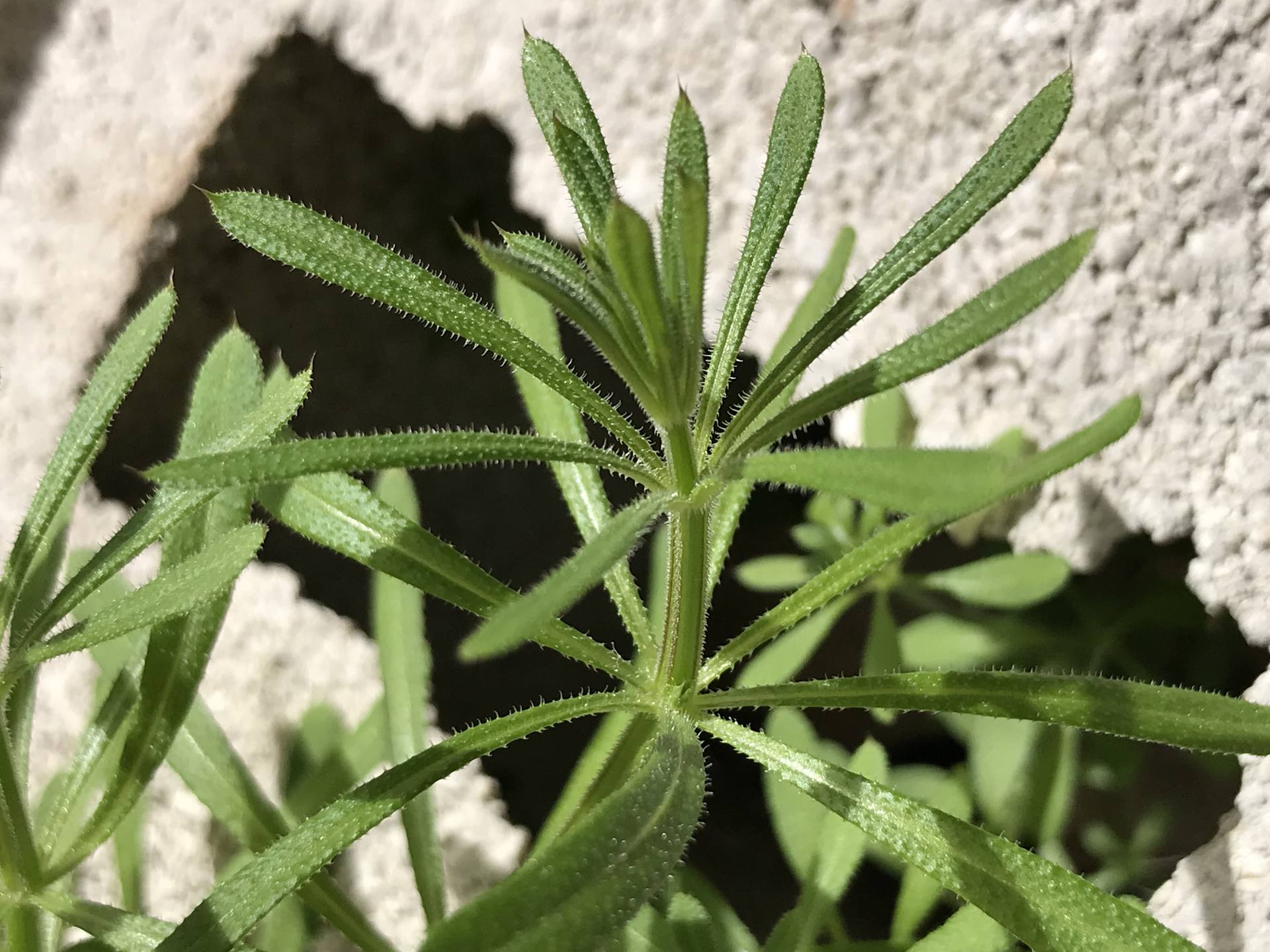 Quelques clics auront suffit pour identifier cette plante très collante qui pousse dans la plate-bande de ma cour intérieure. C'est du Gaillet Gratteron, plante très commune et comestible, dont le fruit, après torréfaction est un succédané de café...