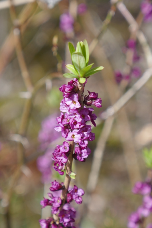 C'est au bord d'un chemin forestier de la forêt de Parroy (54) que nous avons eu le plaisir de rencontrer ce petit arbuste au nom  sympathique, bois-joli ou gentil ou Daphné mezereum  famille des Thyméléacées...