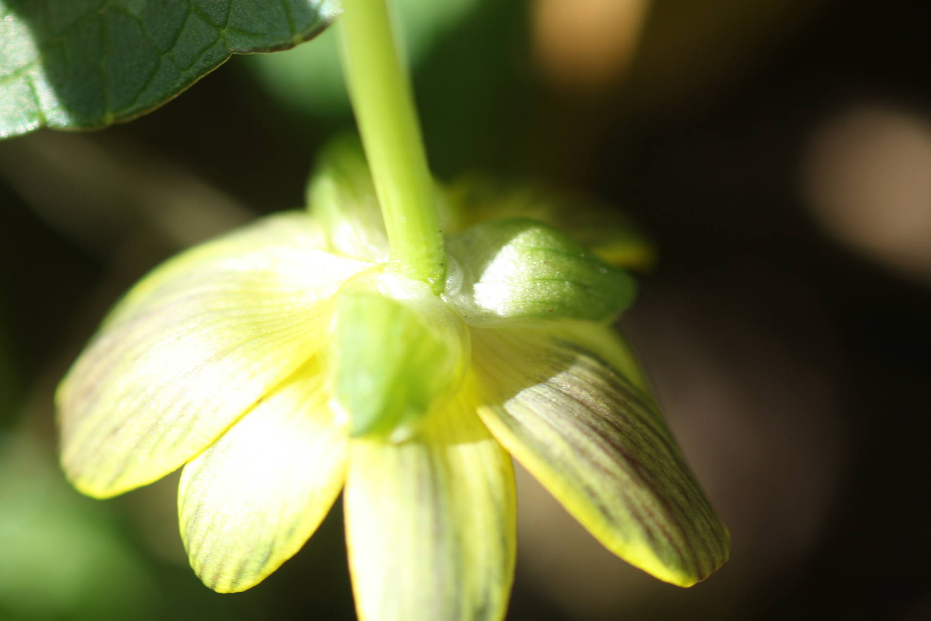 Les fleurs sont jaunes vifs. Elles sont portées par un pédoncule long et poilu. Elles présentent 5 étamines