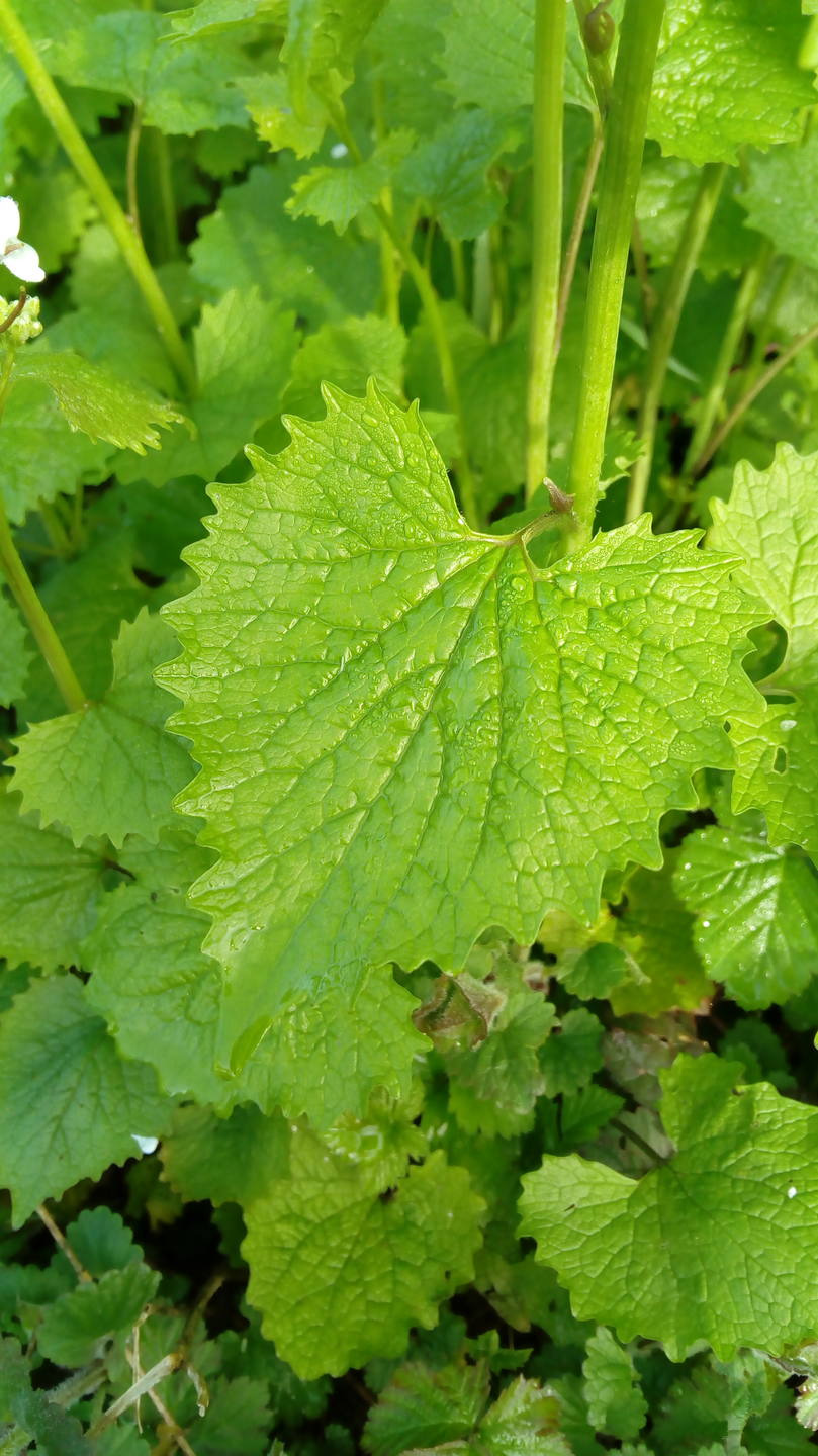 Feuille trilobée, verte sur le dessus et mauve dessous.