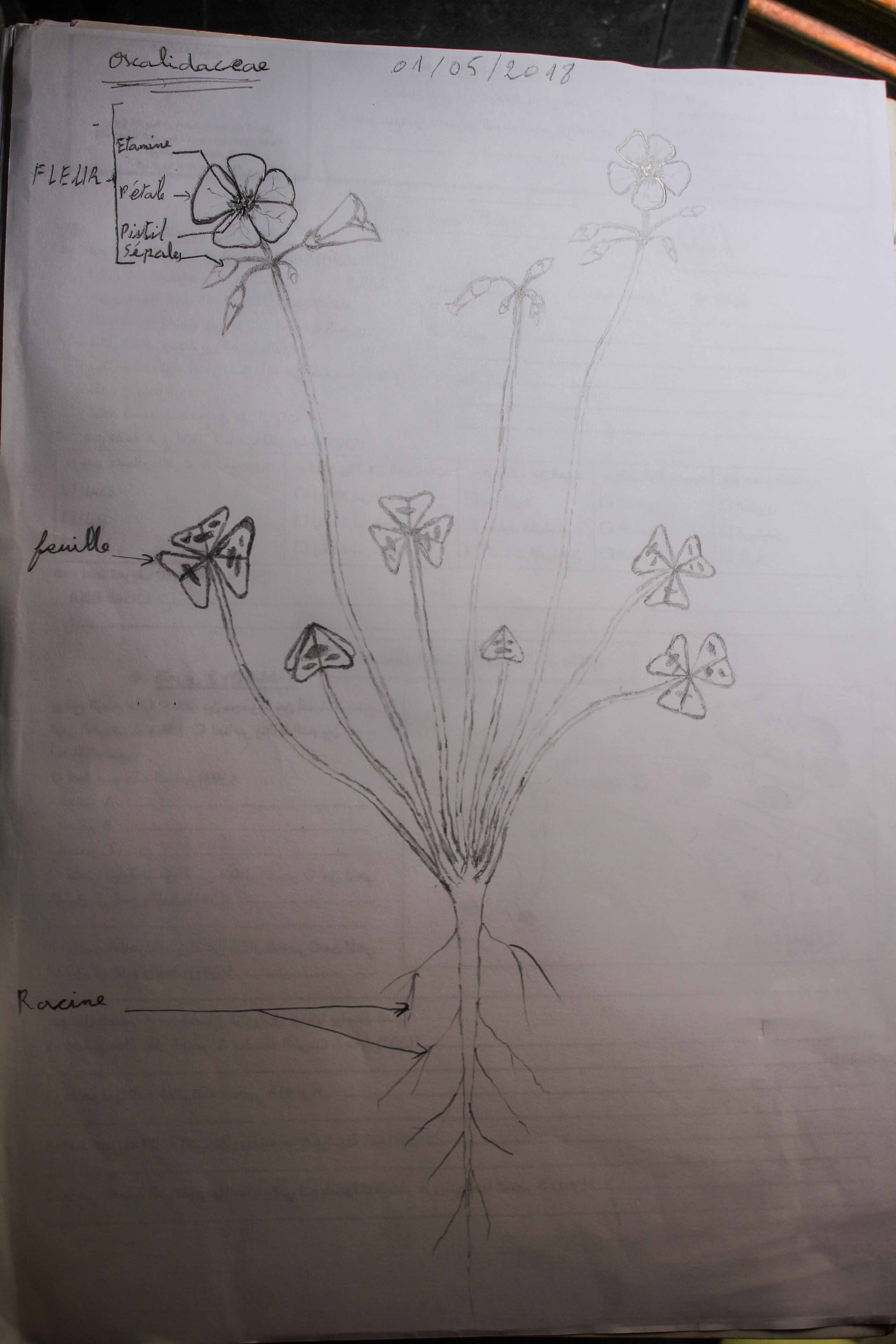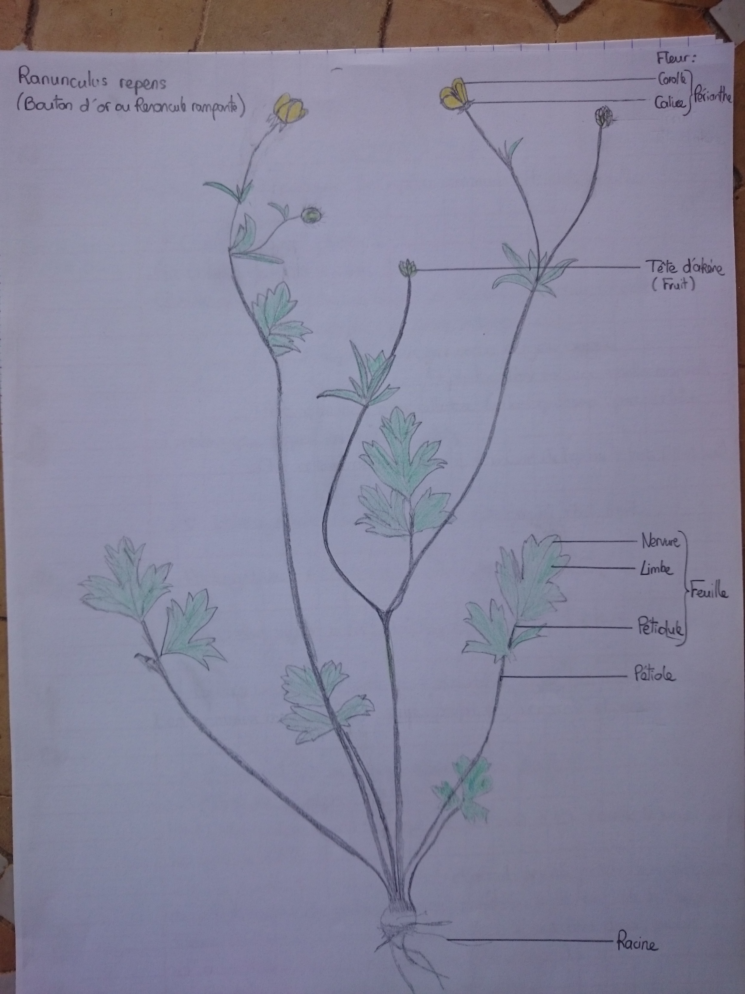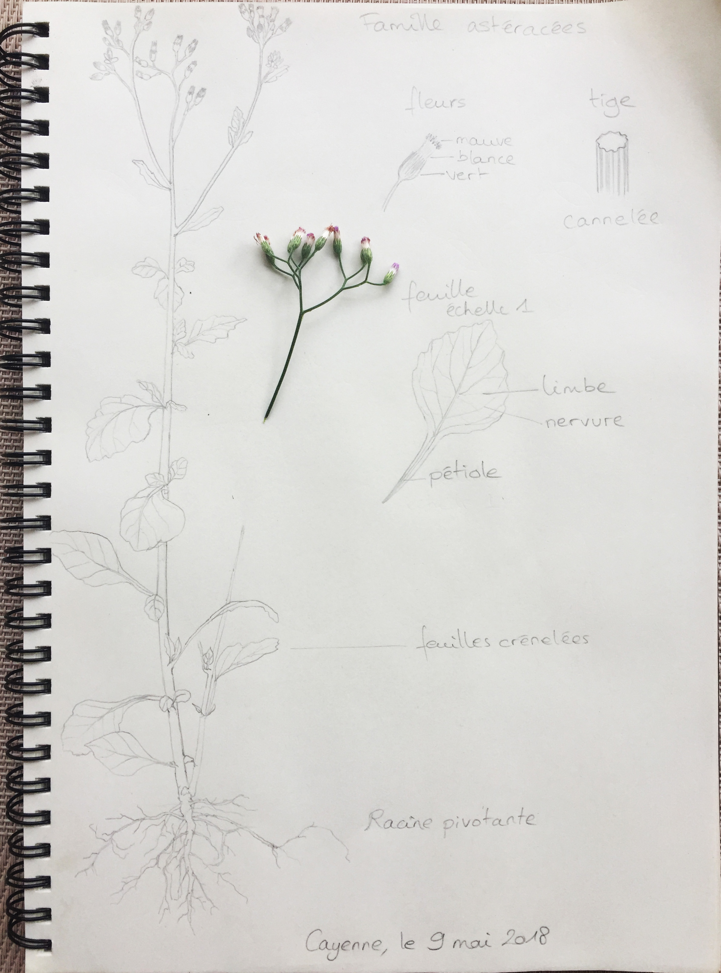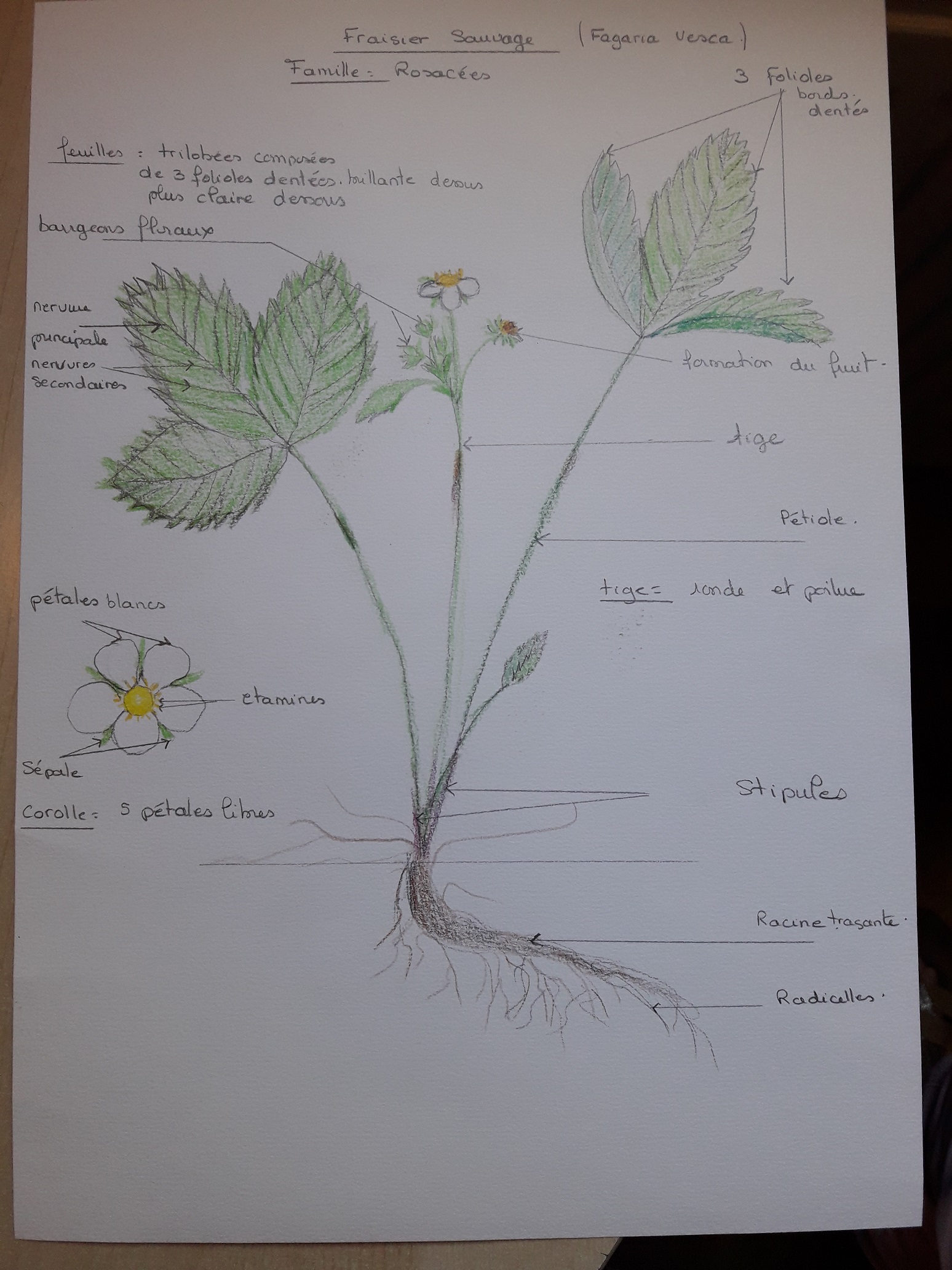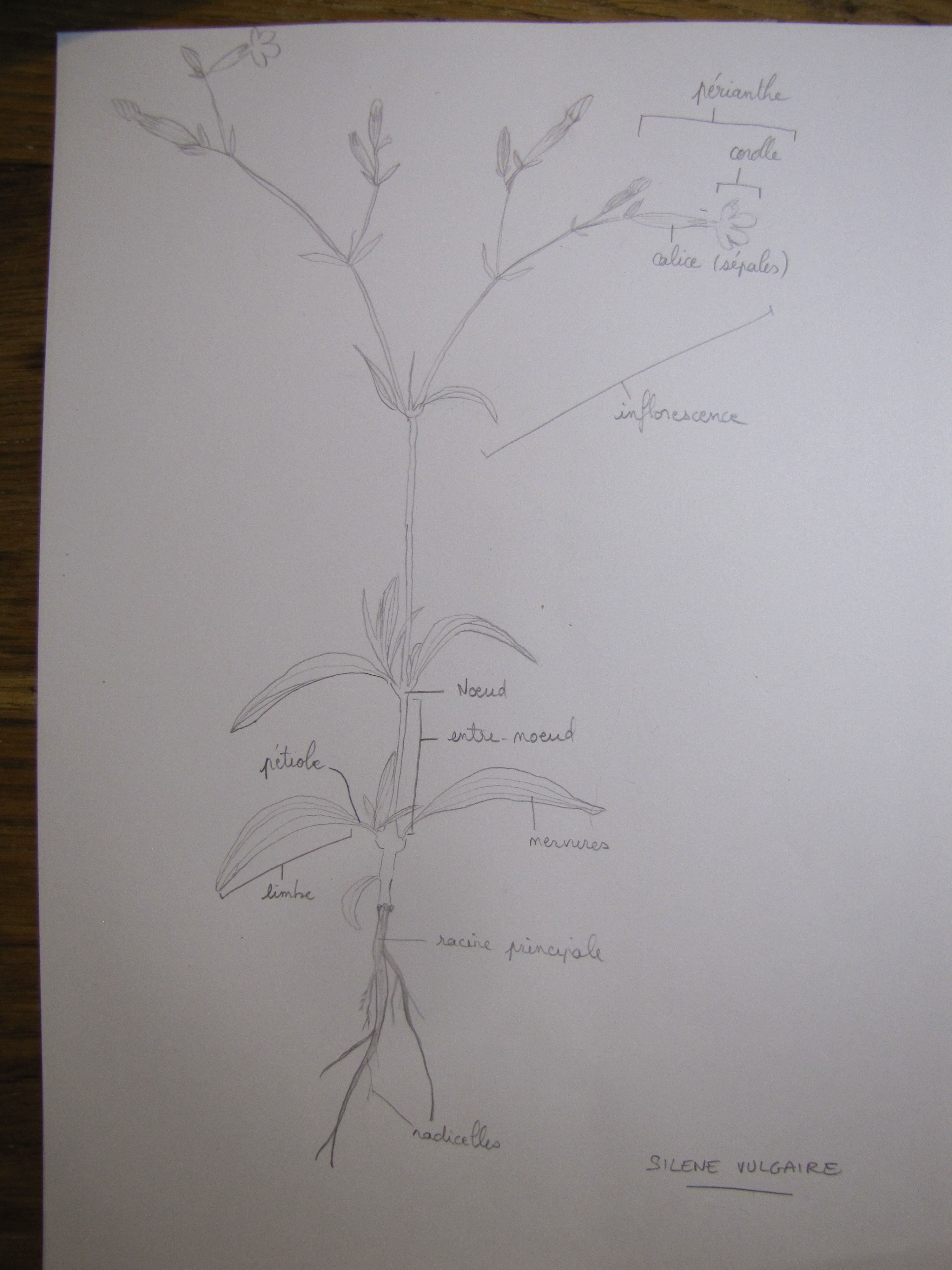 Je constate que les proportions de la plante entière et des feuilles et fleurs ne correspondent pas complètement ; les feuilles et fleurs sont relativement trop grand dans mon dessin
