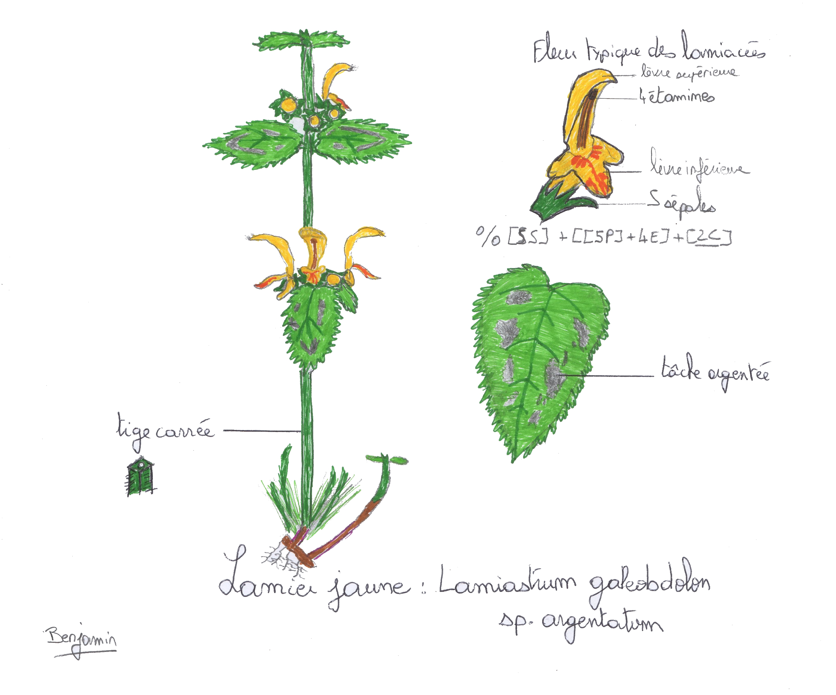 Schéma d'un Lamier blanc (Lamium album), récolté à Chevrières (Oise), le 30 avril 2018.