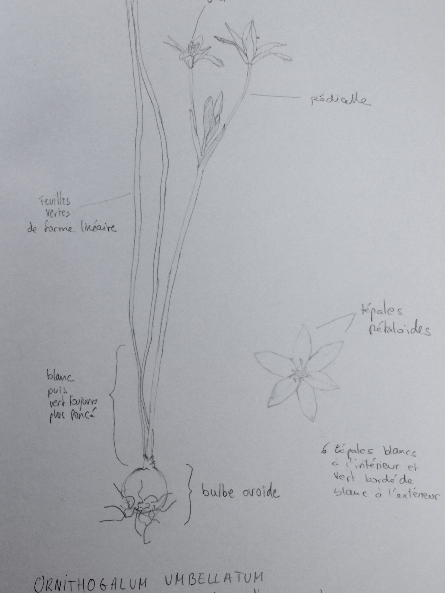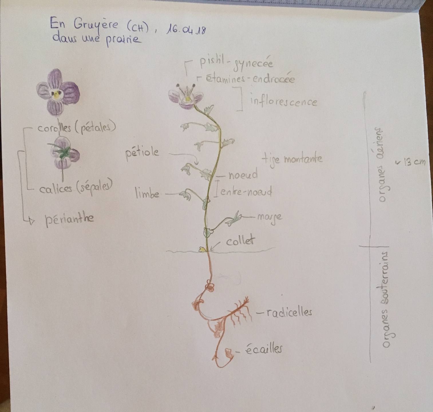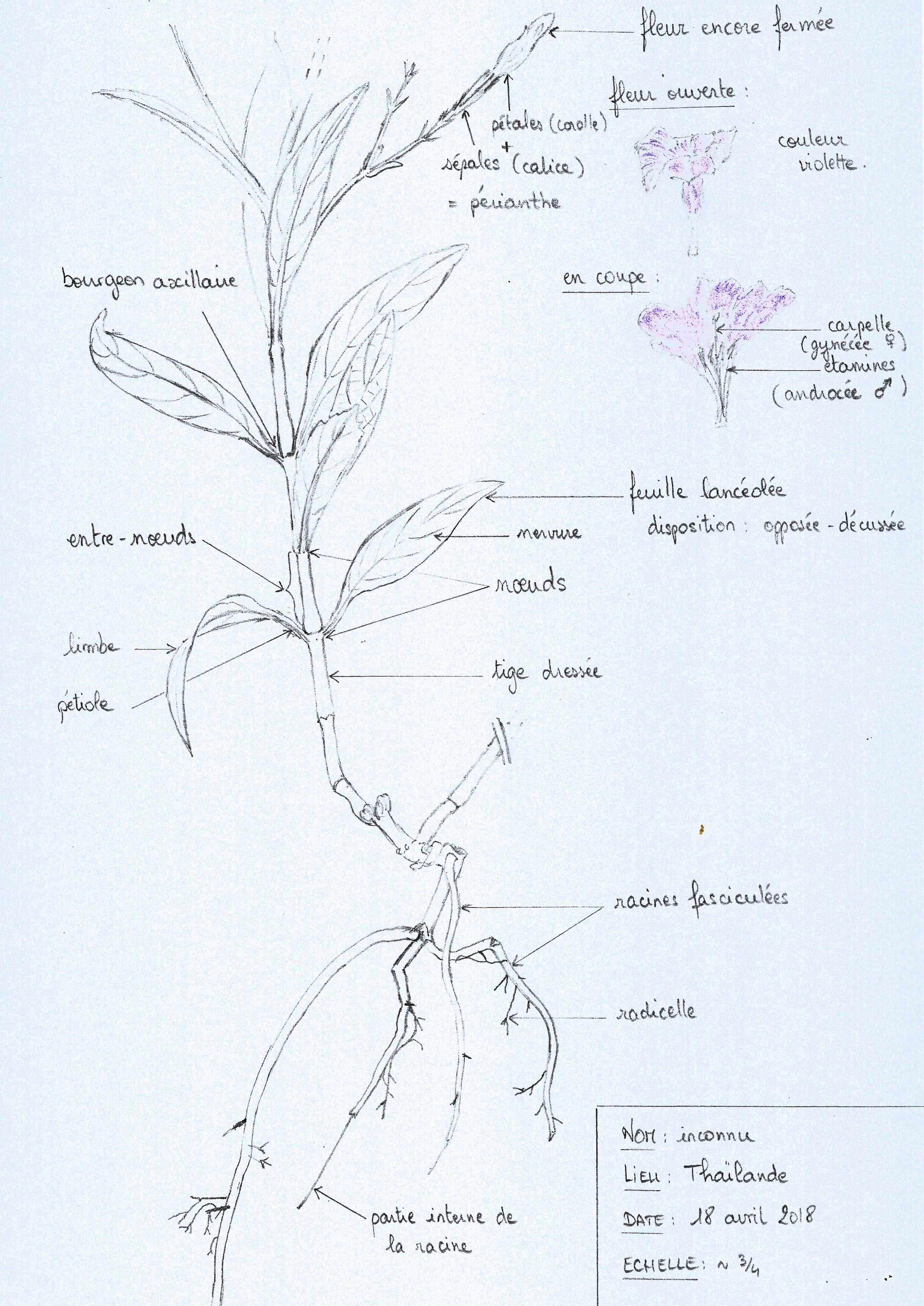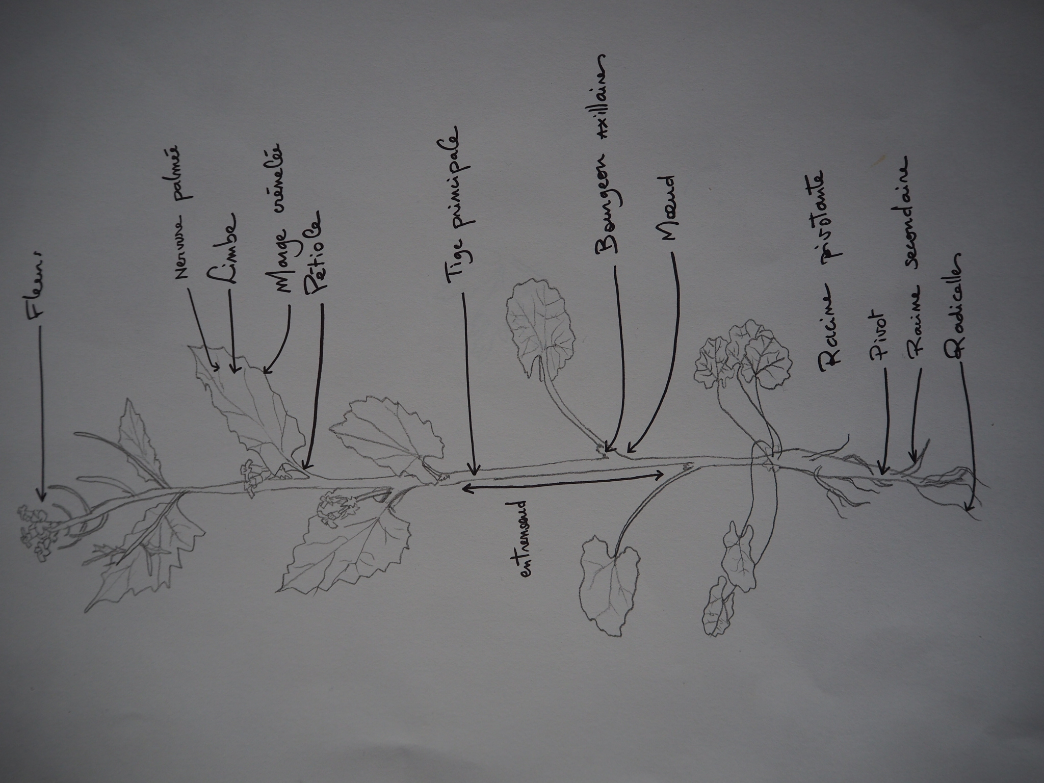 N'ayant pas pour habitude d'arracher une plante pour un usage autre qu'alimentaire / médicinal, je n'ai pas dessiné les racines. Cela peut poser problème pour certaines identifications mais je me contente en général de ce que je vois au-dessus du sol.