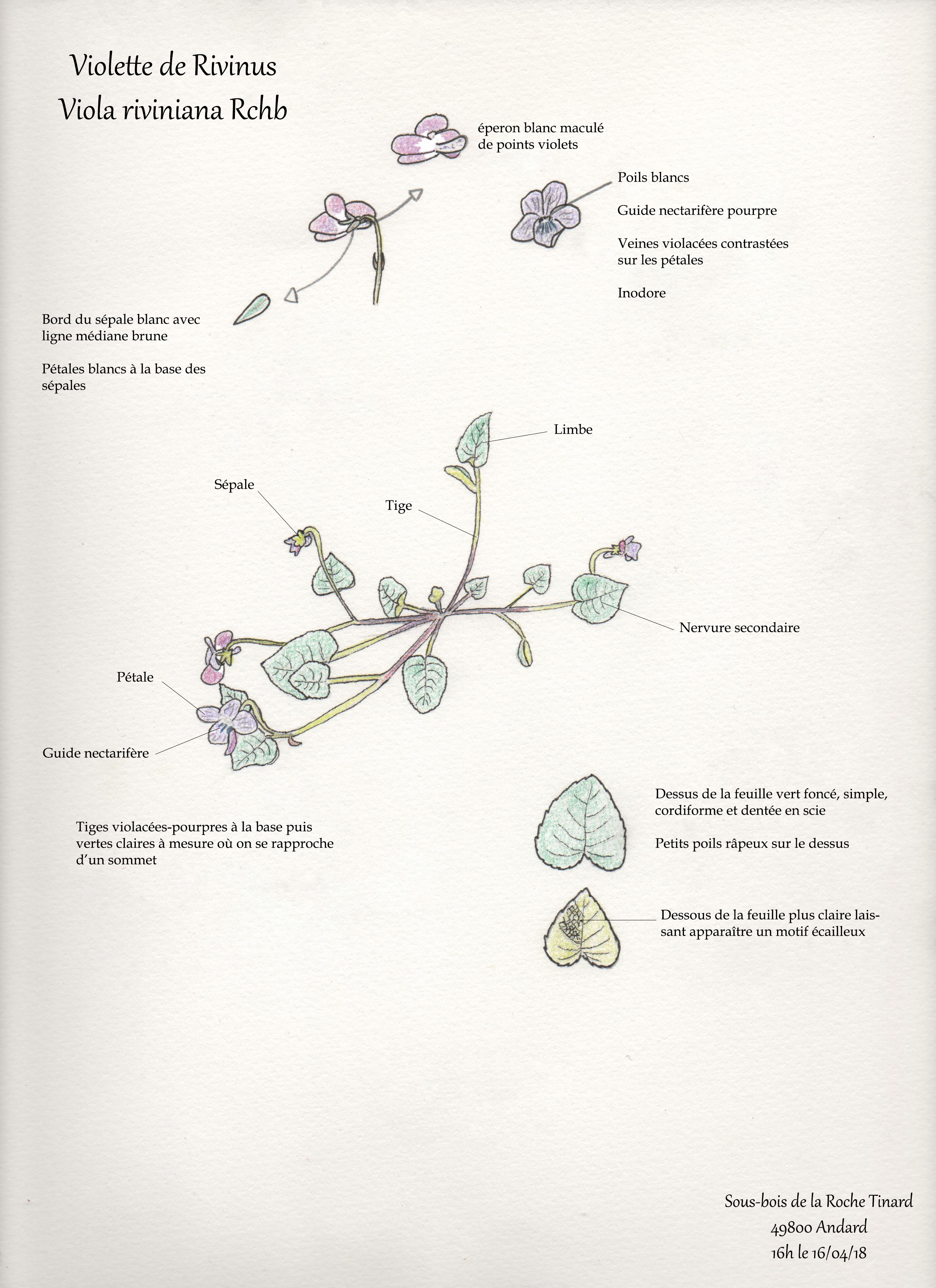 Voici une représentation d'une violette de Rivinus (Viola riviniana Rchb.) découverte hier après-midi dans un sous-bois près d'Andard.