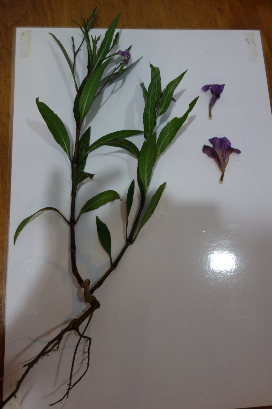 Cette plante se répand via sa racine traçante, et offre chaque jour de belles fleurs violettes. Je l'ai arrachée dans le patio le 20 avril. Le long de la tige courent des paires de feuilles opposées décussées, une fleur se développe à partir de chaque nœud. La tige se dresse à une hauteur d'environ un mètre.