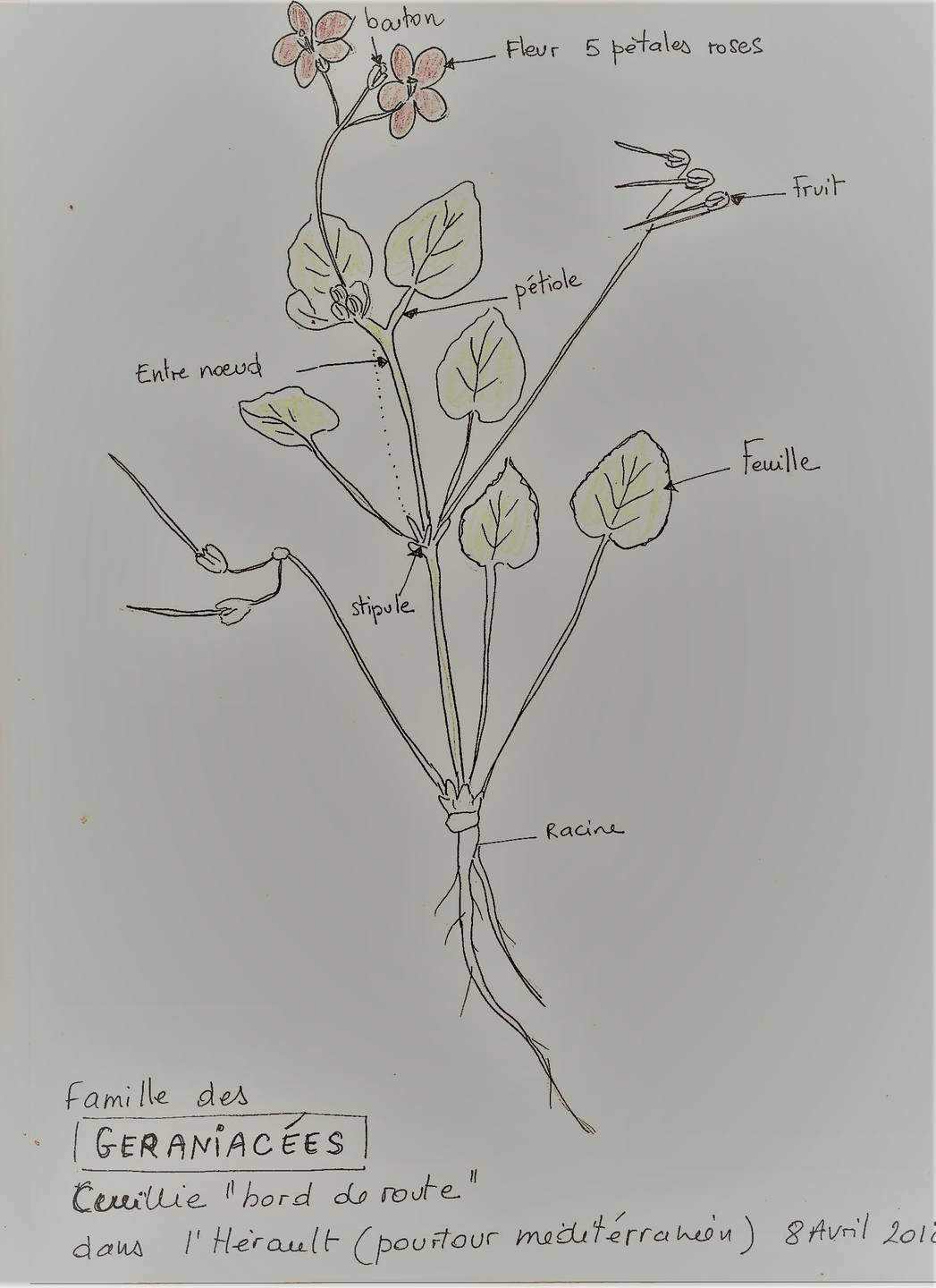J'ai fait de mon mieux pour essayer de rendre le dessin le plus réaliste possible. Malheureusement les crayons feutres couleurs devenus un peu secs qu'utilisaient mes petites filles, n'ont permis que d'évoquer vaguement celles de la plante.