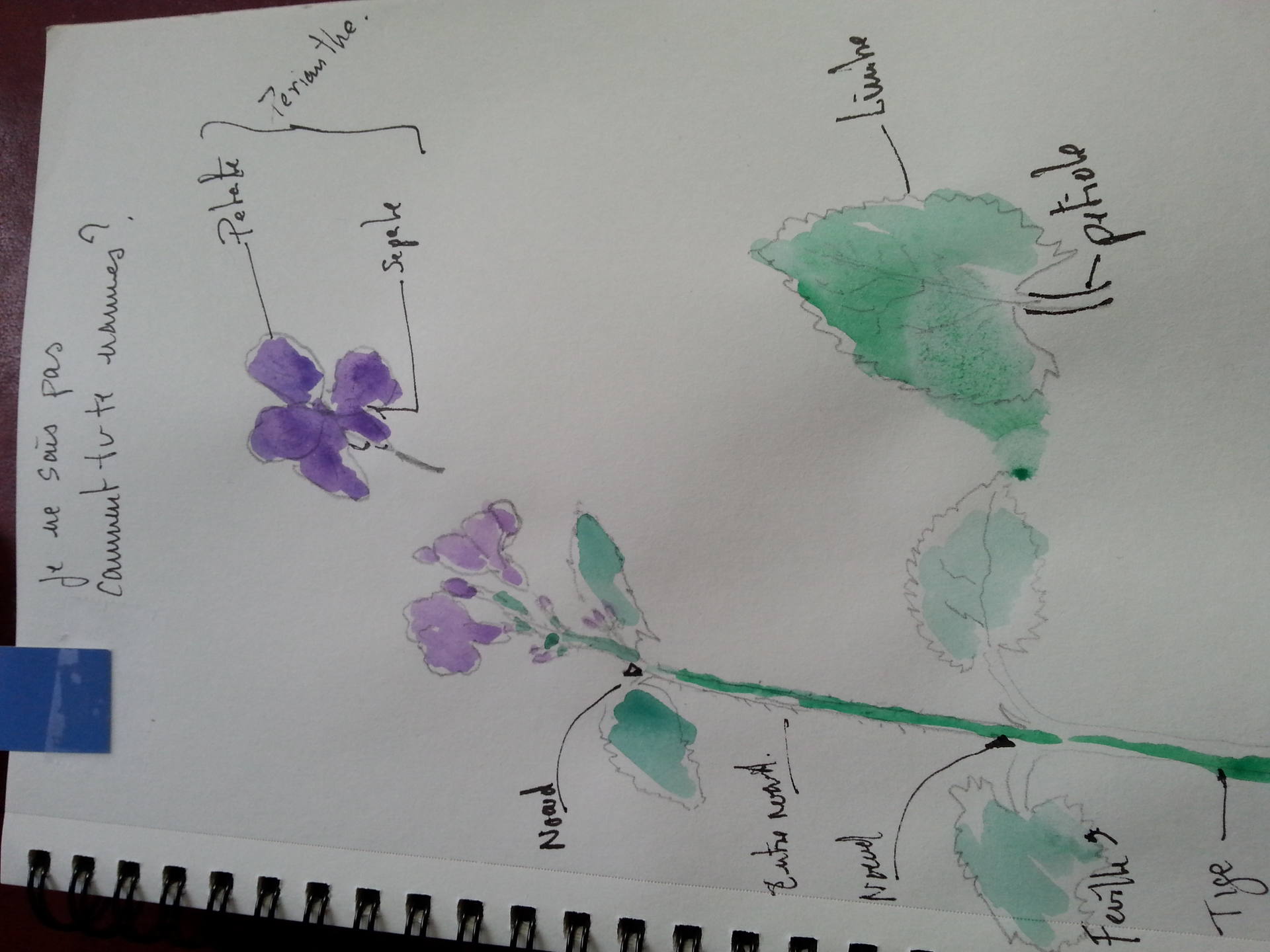 Violette installée sur ma pelouse au pied de l'érable. Sacrifiée pour un petit croquis..