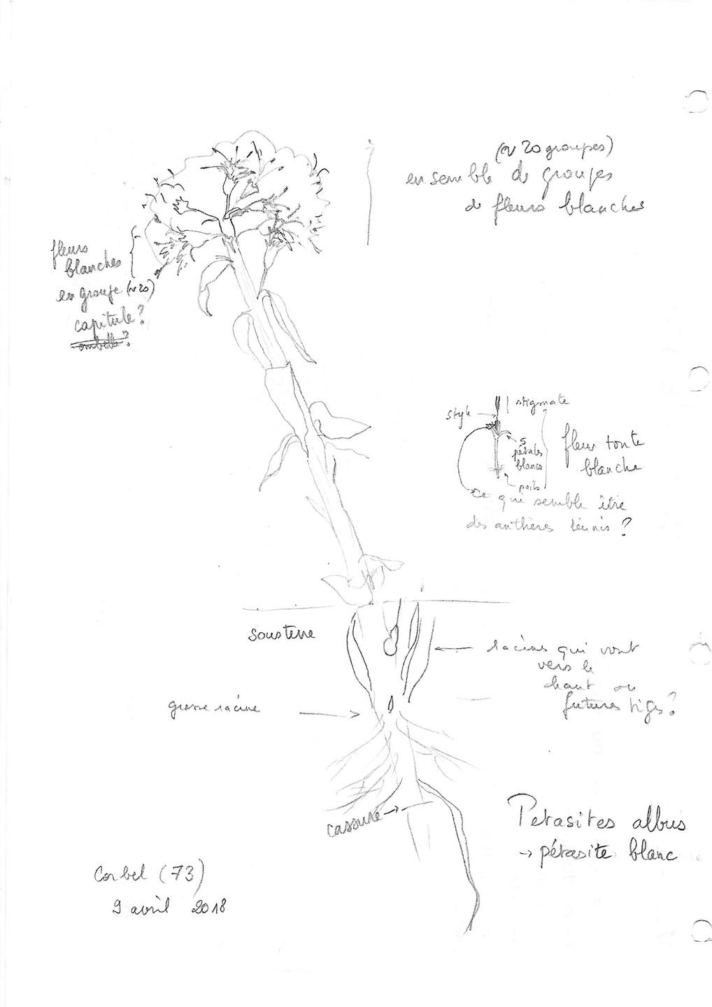 Ici on voit bien ce que j'ai supposé être une bractée.