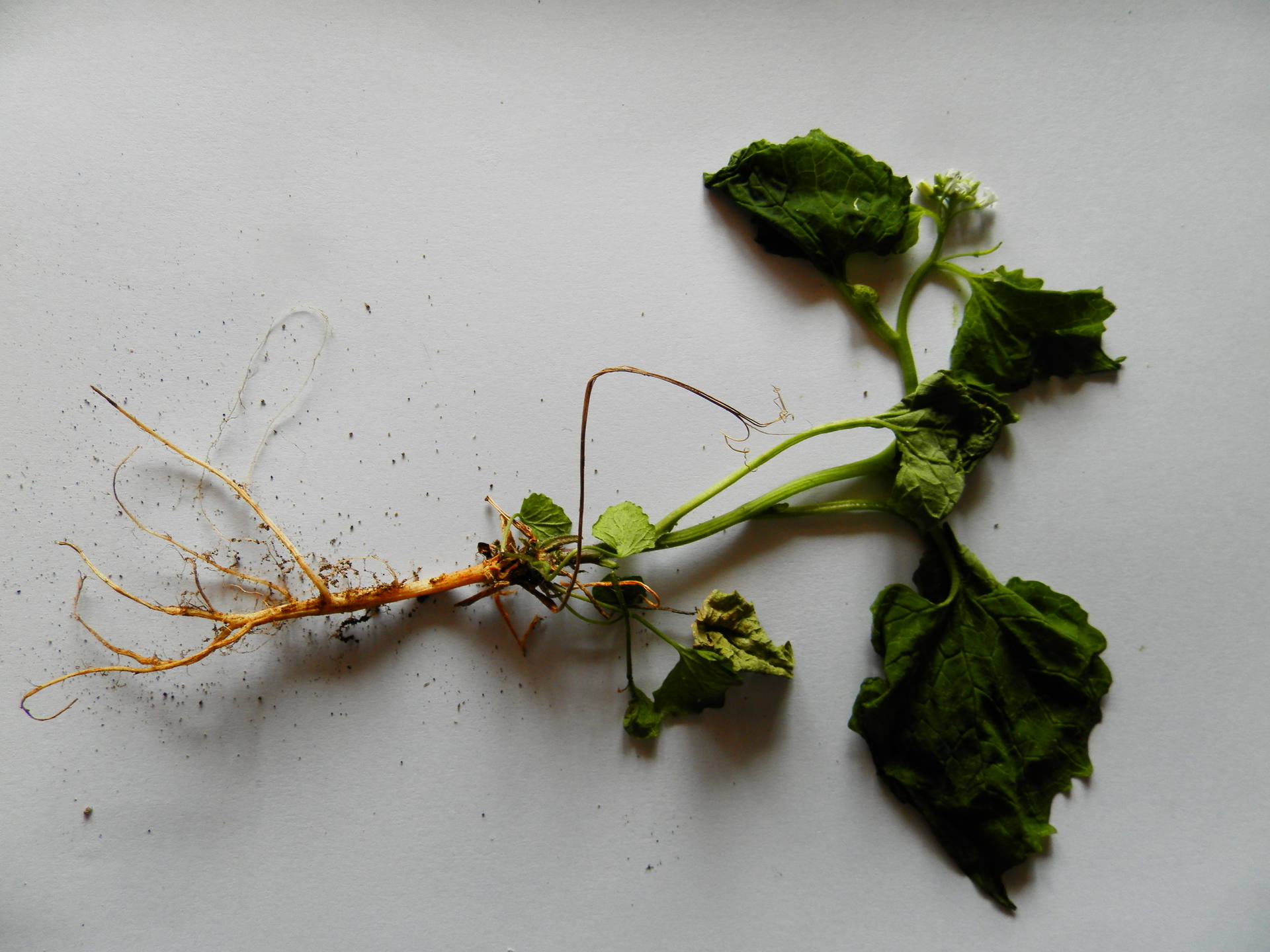 Les cardamines commencent à fleurir dans tout le jardin - prairie. Les feuilles situées sur la tige ou situées au pied de la plante sont très différentes. J'ai eu un peu de mal à arracher la plante sans abimer les racines.