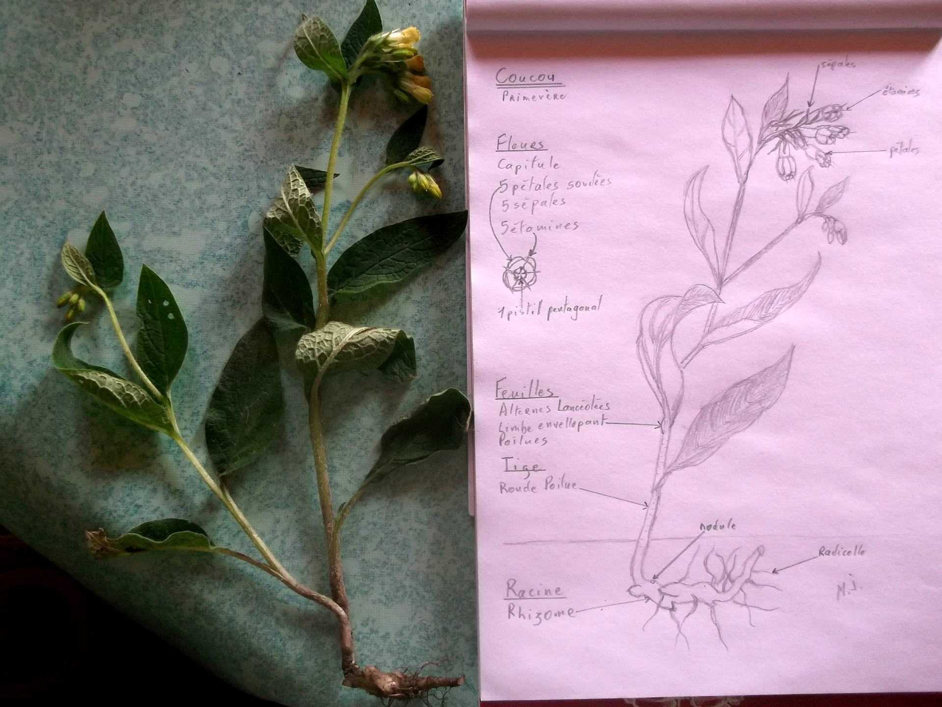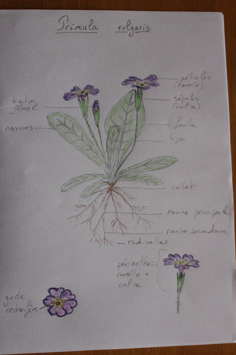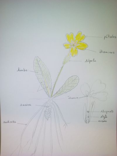 Les pervenches sont apparues chez nous il y a déjà 3 semaines (nous sommes à 850m d'altitude, en Sud Isère). J'avoue avoir triché, en prenant une photo sur le net. D'abord, je suis archi archi nulle en dessin, je suis en plein déménagement donc je manque de temps, et franchement je ne me voyais pas déterrer une fleur avec sa racine, c'est contre mes principes :/ Enfin bref, je pense que l'essentiel de cette activité, est la connaissance des termes botaniques, et la bonne localisation des organes.
