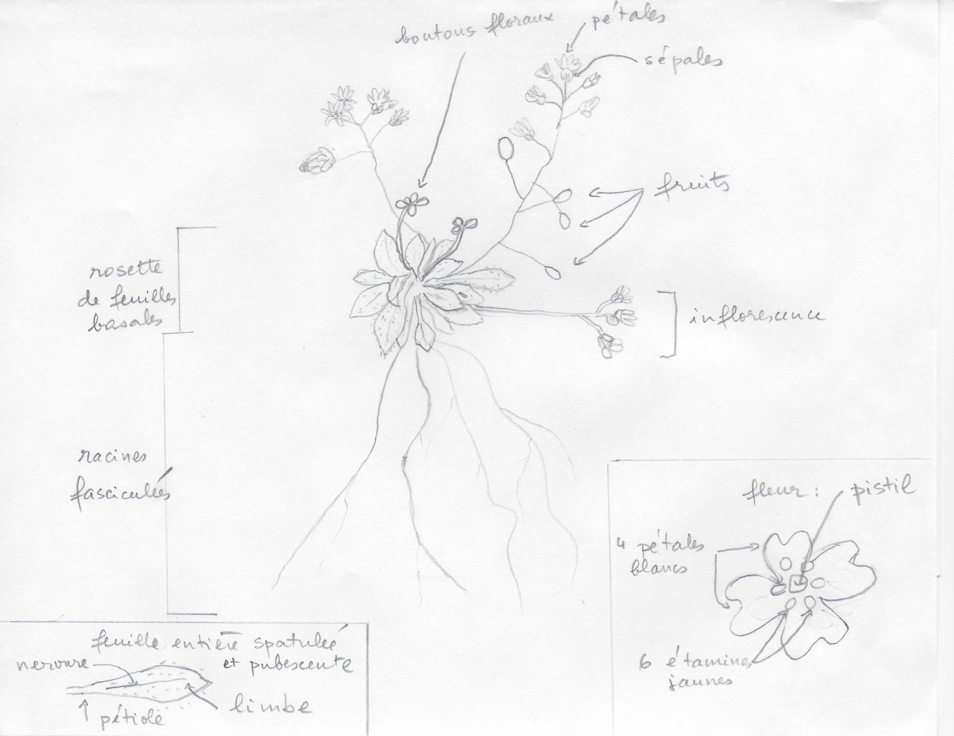 fleur ? verte trouvée dans le jardin 2sèvres (breilbon) et ainsi baptisée par mes soins : c'est plus chic et botannique de le faire en latin. N'ayant pas de loupe j'ai fait mon possible pour le dessin .