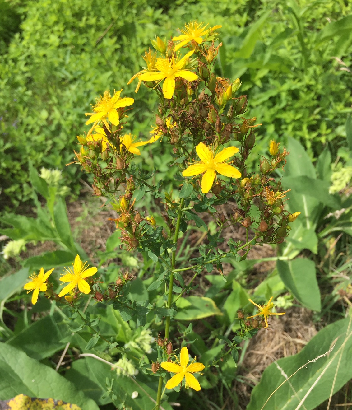 Le millepertuis ou Hypericum perforatum L. de la famille des Hypericacée se trouve quasiment partout en France. Cette fleur appelée aussi millepertuis perforé ou au mille trous n'est pas du tout trouée. Les petites tâches noires  correspondent à des glandes d’huile essentielle.