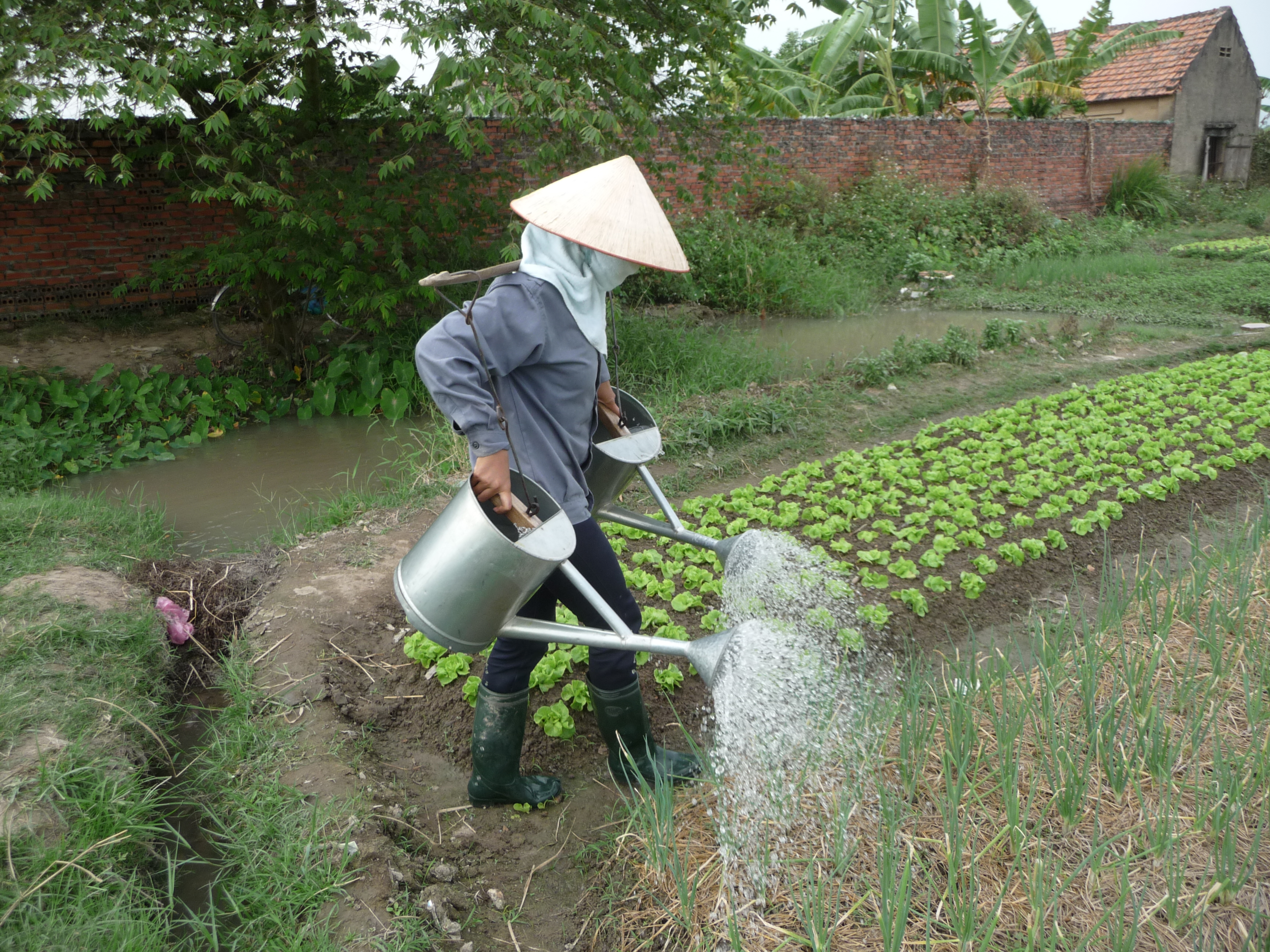 - le rouissage à l'eau, utilisé pour les lins de qualité, consiste à faire tremper le lin dans de grands baquets en bois à deux reprises, avec un séchage au soleil entre les deux trempages