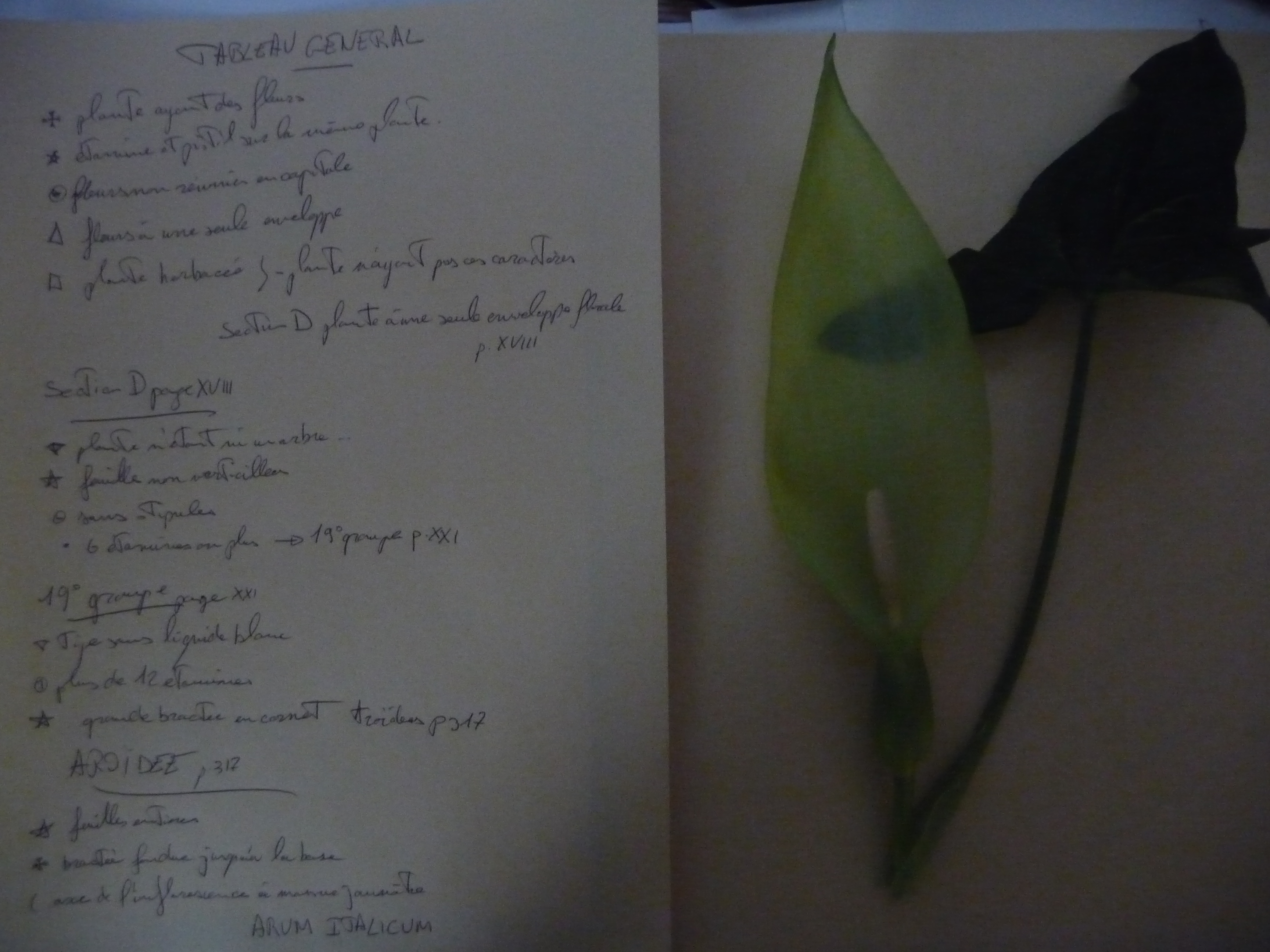 J'ai dons essayé à l'endroit et je me suis vite heurté aux mots utilisés. Dans un premier temps, j'ai utilisé le glossaire de la flore et un glossaire en ligne. Ce fût fastidieux et j'ai du abandonner.