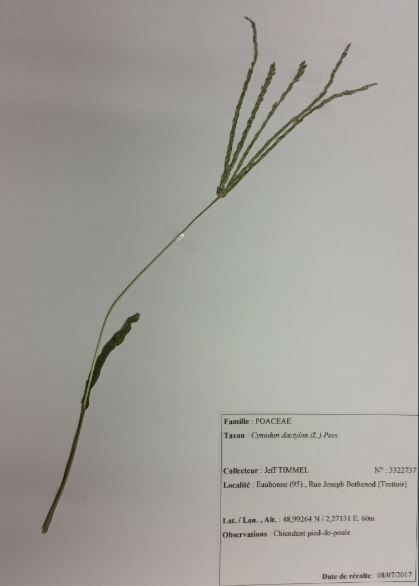 mise en herbier au 03/05/2018 , récoltée dans la rue ,