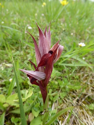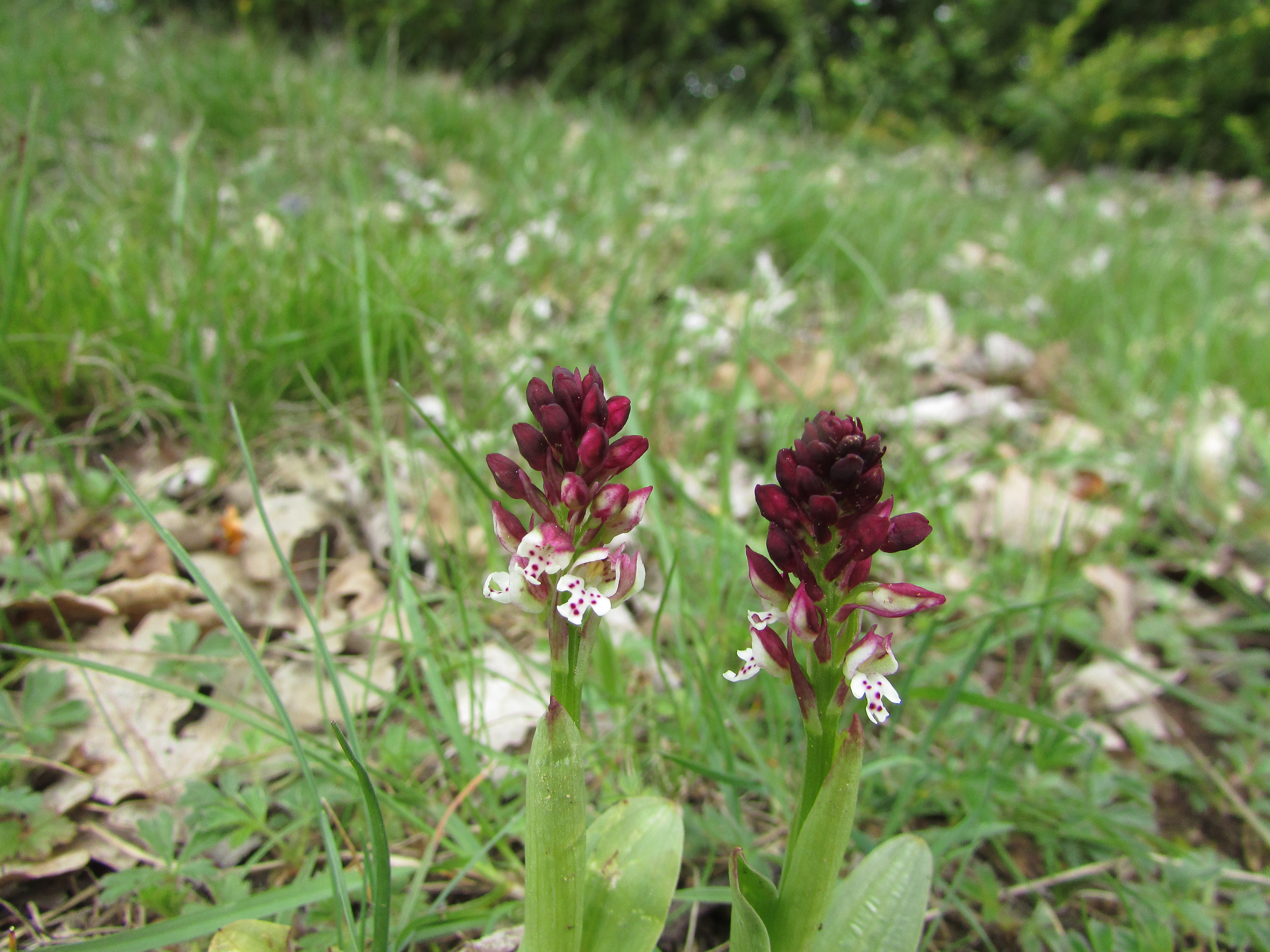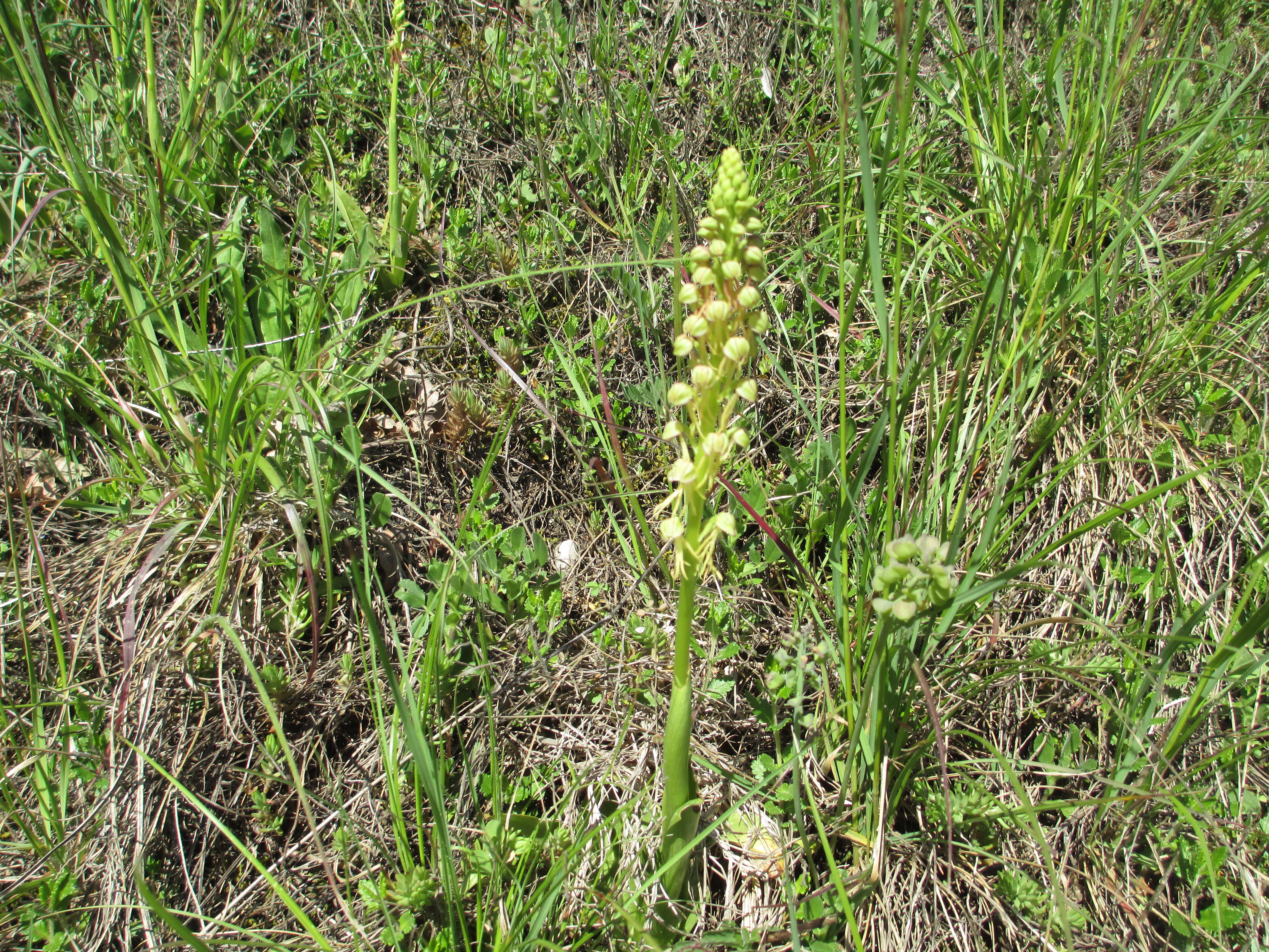 Suite a la lecture du livre de Christian Dirwimmer sur les Orchidées d'Alsace , j'ai reconnu un endroit a coté de notre maison de Famille. Malheureusement, nous y étions que fin Avril 2018 ce qui est trop tôt pour les voir en fleur. Mais après une grimpette pour monter a la nécropole de Sigolsheim , nous les avons trouvé, a peu près épargnés par le jardinier du site qui a la tondeuse rapide . après recherche je pense que c'est l'Orchis bouc , mais il se trouve qu'il y a plusieurs espèces d'orchidées sur la colline de Sigolsheim. En tout cas celle ci aime les pelouses des nécropoles car elle a été vu aussi a celle de Thiais , sans doute le calme !