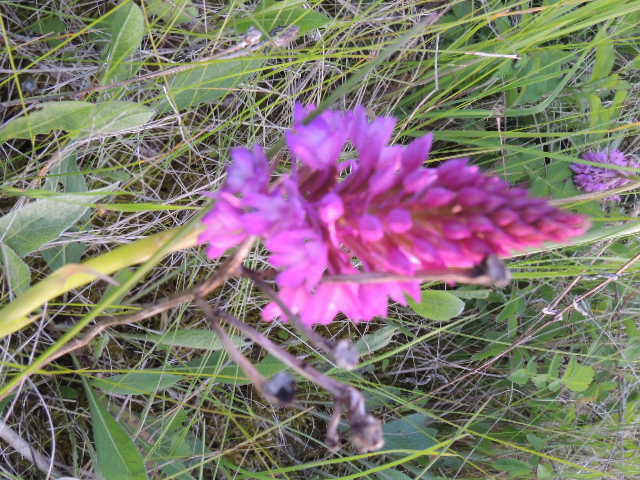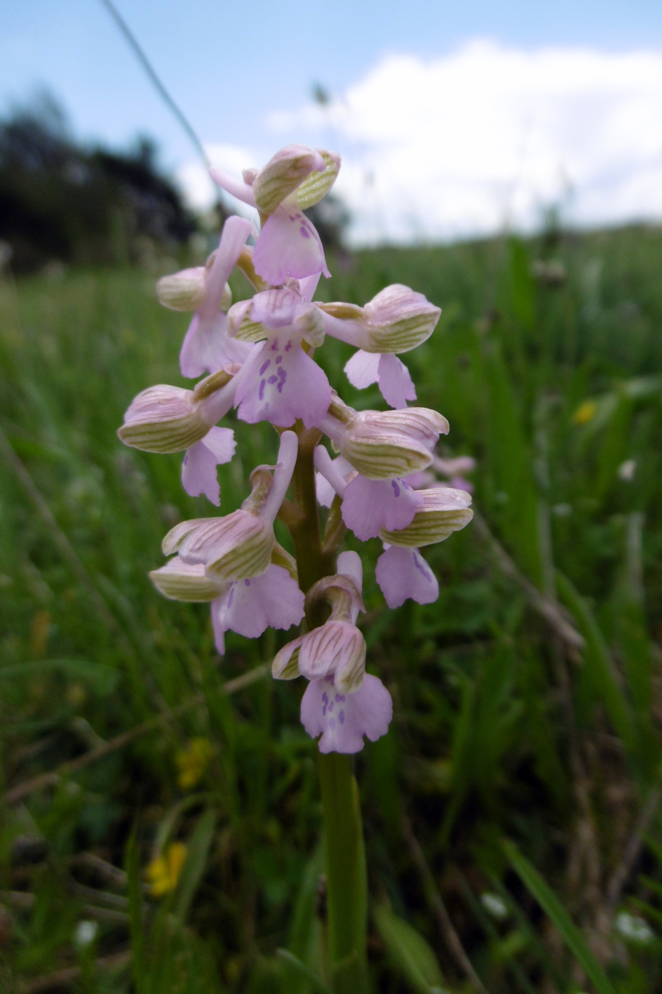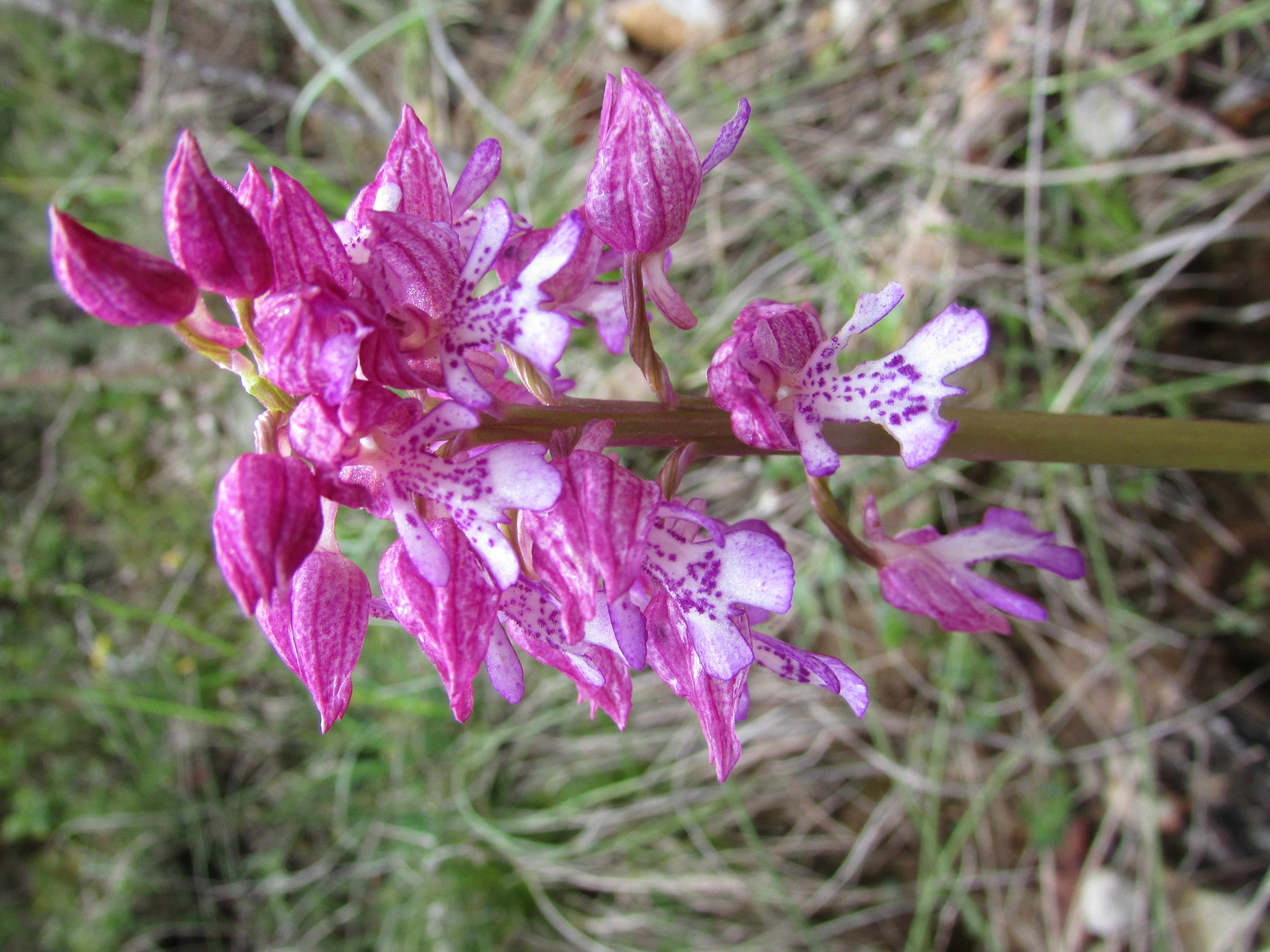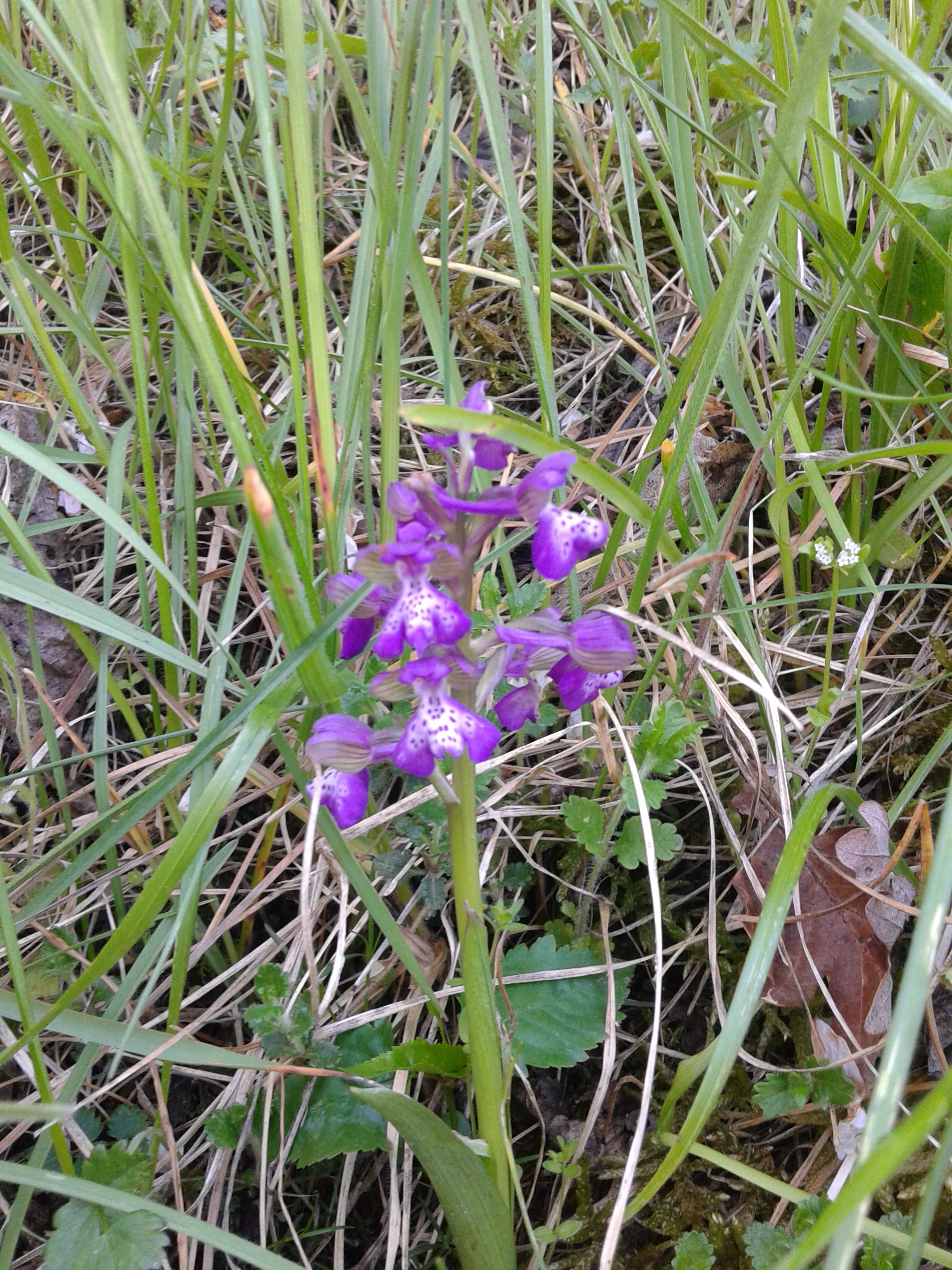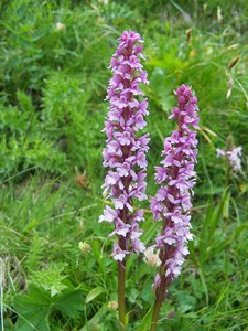 rarement vue mais curieusement j'en ai observée une dans un cimetière de la Manche au beau milieu d'un espace couvert de mousses et de bruyères ;défleurie dans mon souvenir rose pourpre avec une alternance sur la tige , les en rosette vertes maculées de brun ;c'est un Orchis mascula famille des orchidaceae