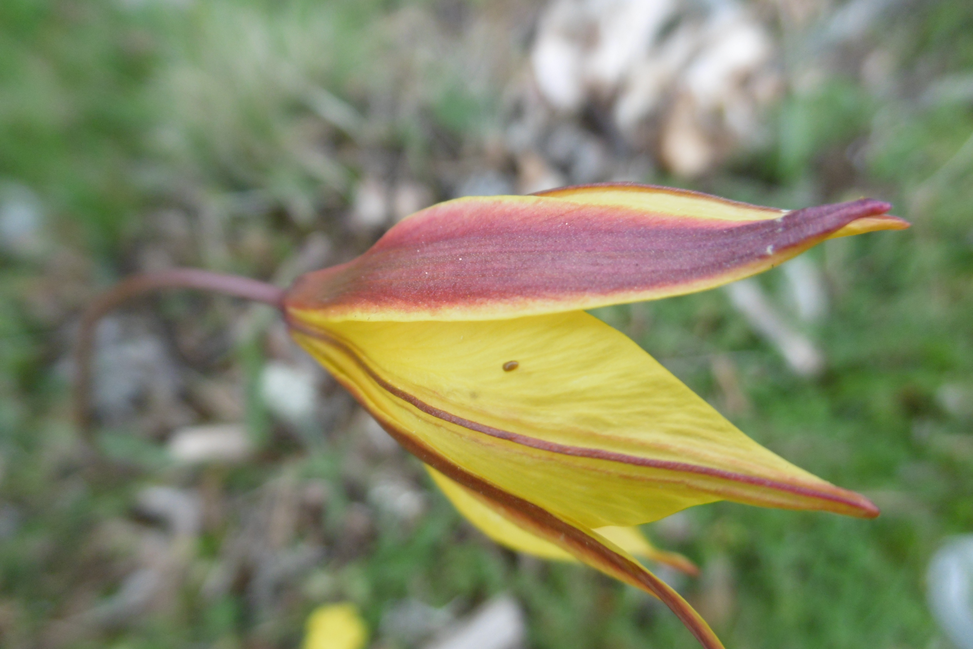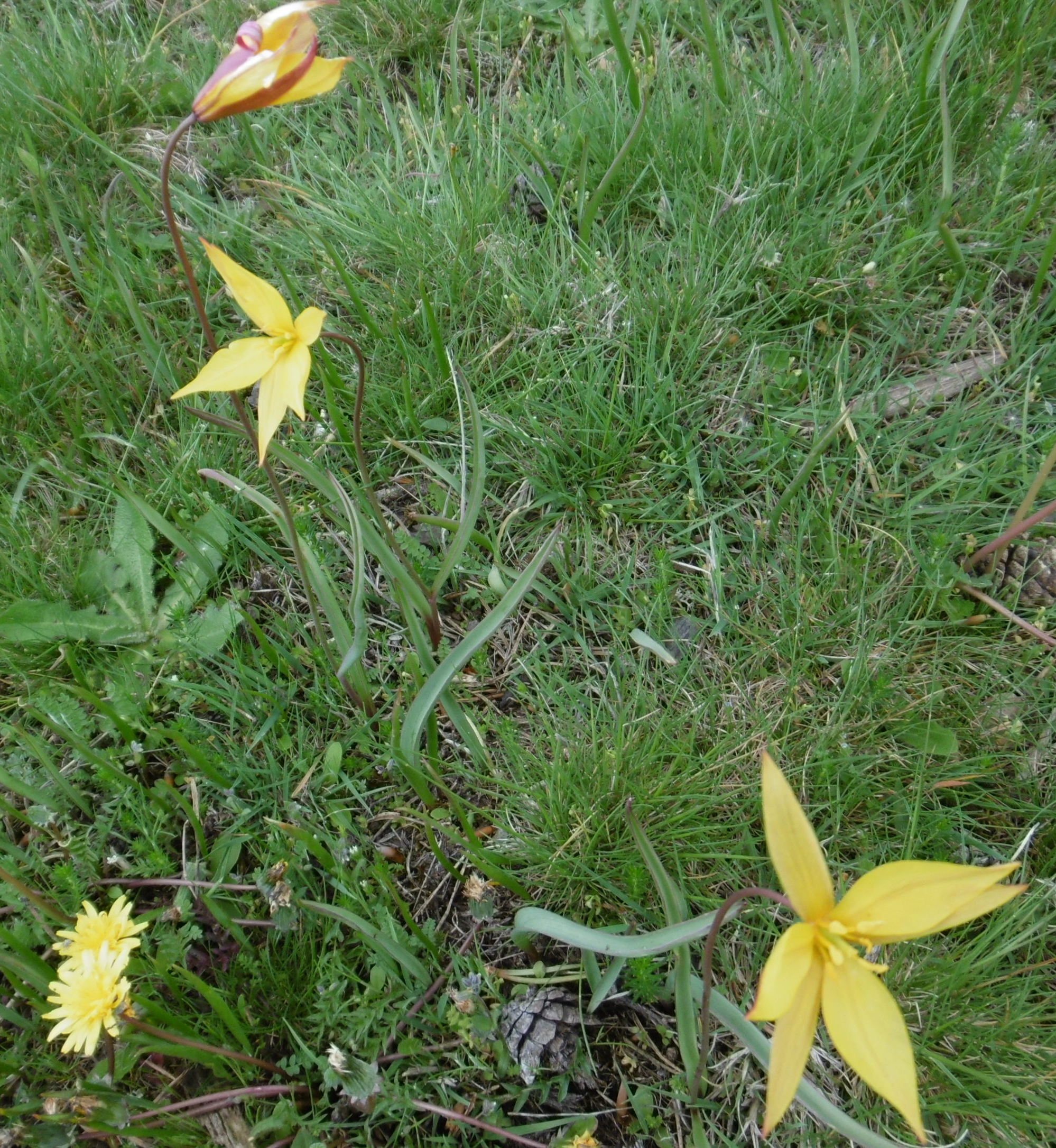 Espèce quasi menacée c'est ainsi qu'elle apparaît sur la liste rouge de l'Auvergne. Et il se trouve que c'est la première fois que je la rencontre et que je l'ai vue aujourd'hui. Elle se trouve sur une prairie sèche et rocailleuse. C'est une plante bulbeuse d'environ 20 cm, tige glabre. il y a 3 ou 4 feuilles partant de la base linéaires. La fleur est jaune, teintée de rouge à l'extérieur avec 6 tépales. Elle est en fin de floraison dans le cantal. (1ere et 4ème photo )