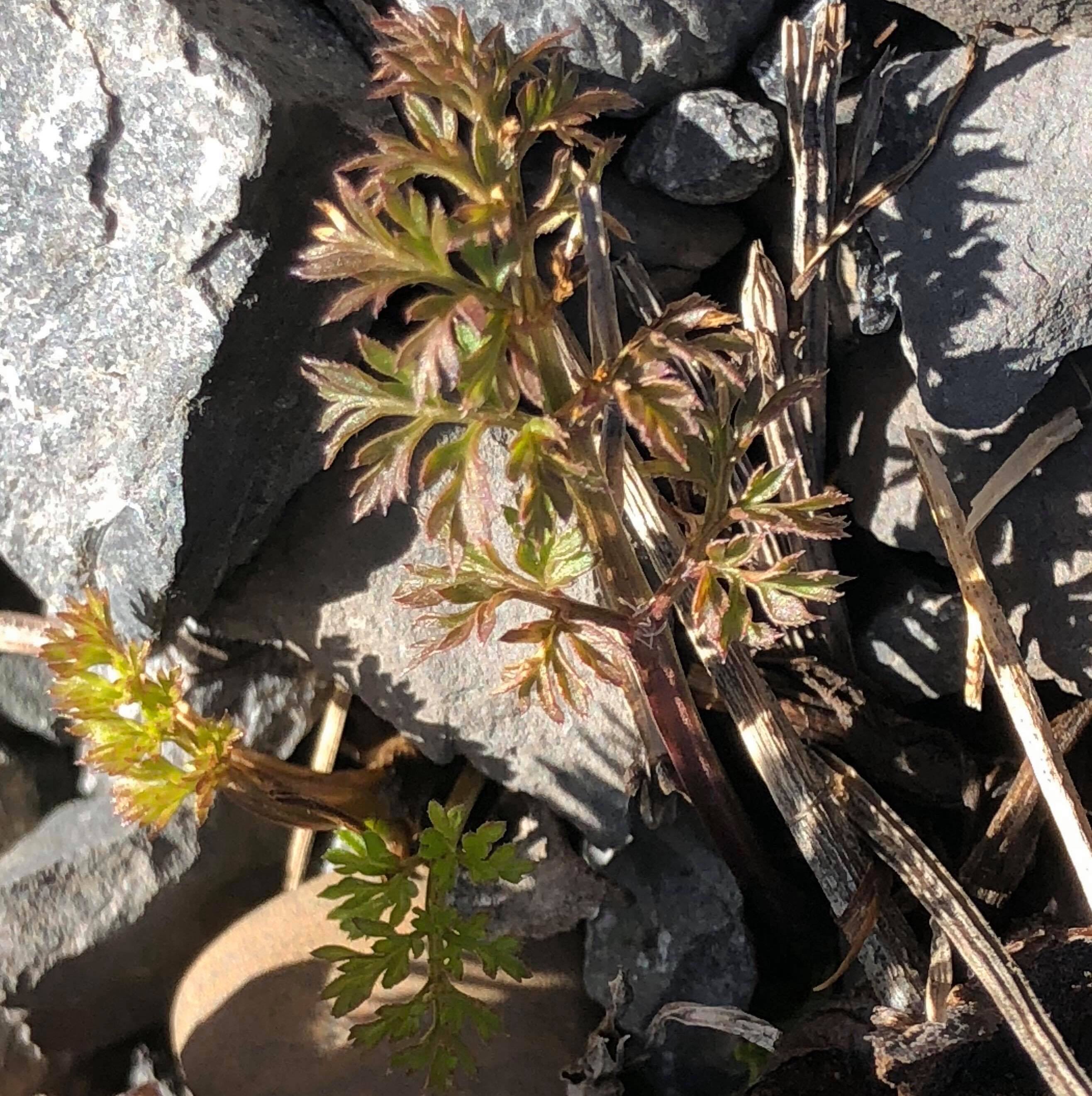 - la base des pousses est de couleur bordeaux, tige avec une rigole, n'a pas trop d'odeur, feuilles pennées, pas de tâche sur la tige