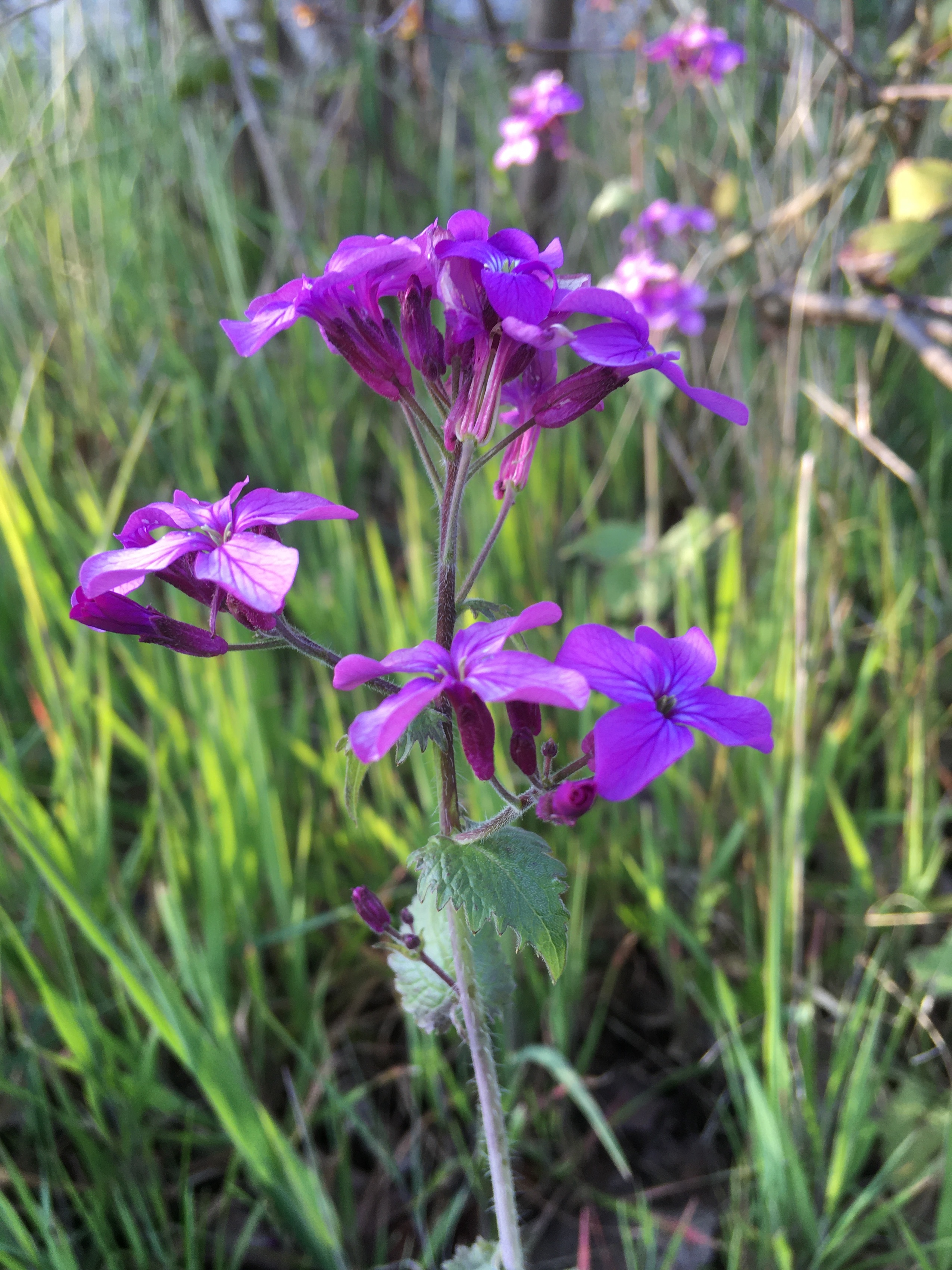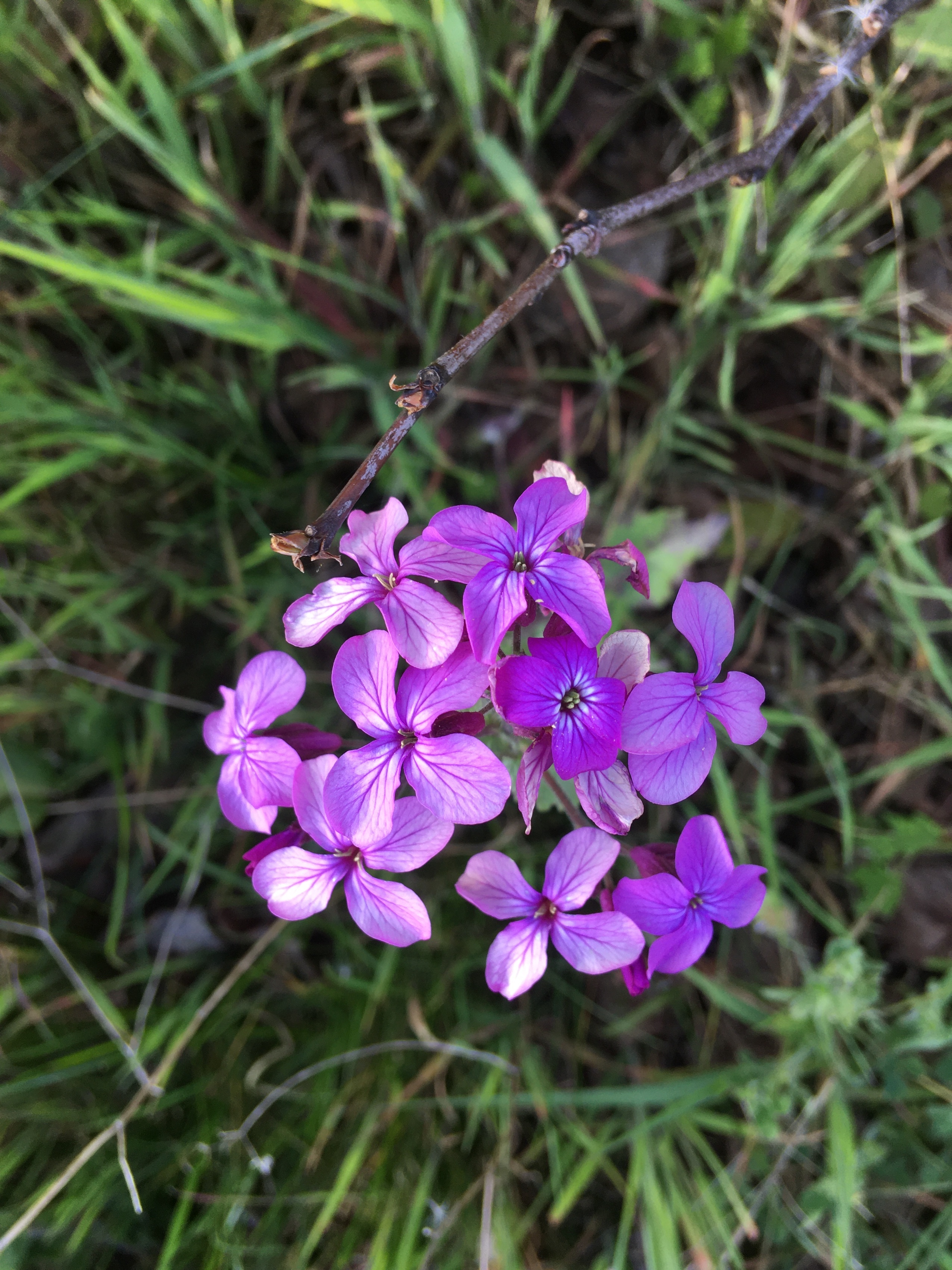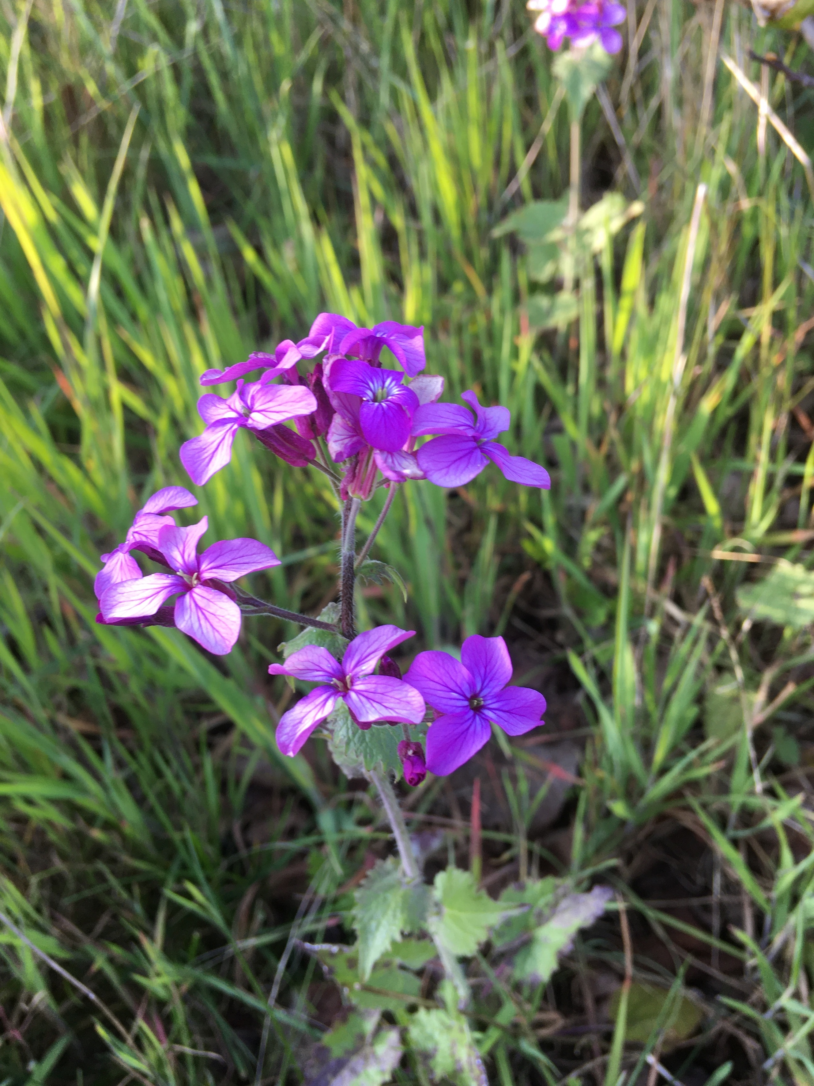 Elle a de remarquable sa belle teinte mauve qui dès le début du printemps ne laisse pas indifférent ainsi que le fait qu'elle pousse dans mon verger en cette période maigre de confinement.