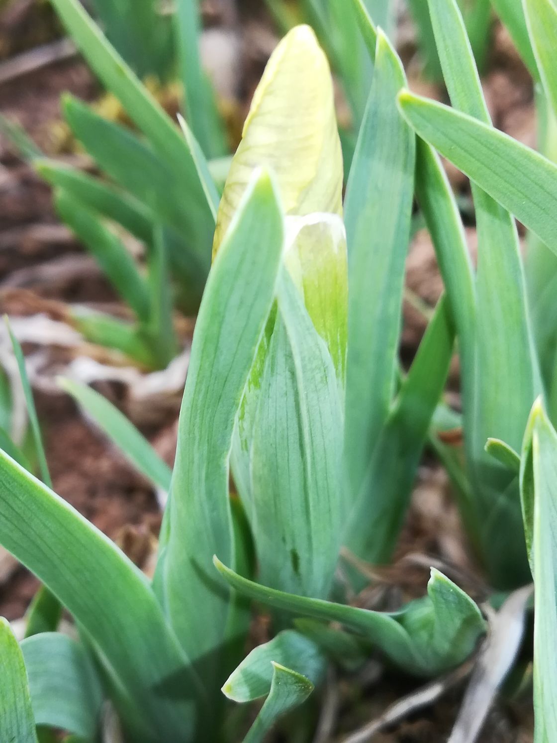 Dans le coin garrigue de mo jardin, un tapis d'Iris Iris chamaeiris Bertol en fleur actuellement (fin mars).
