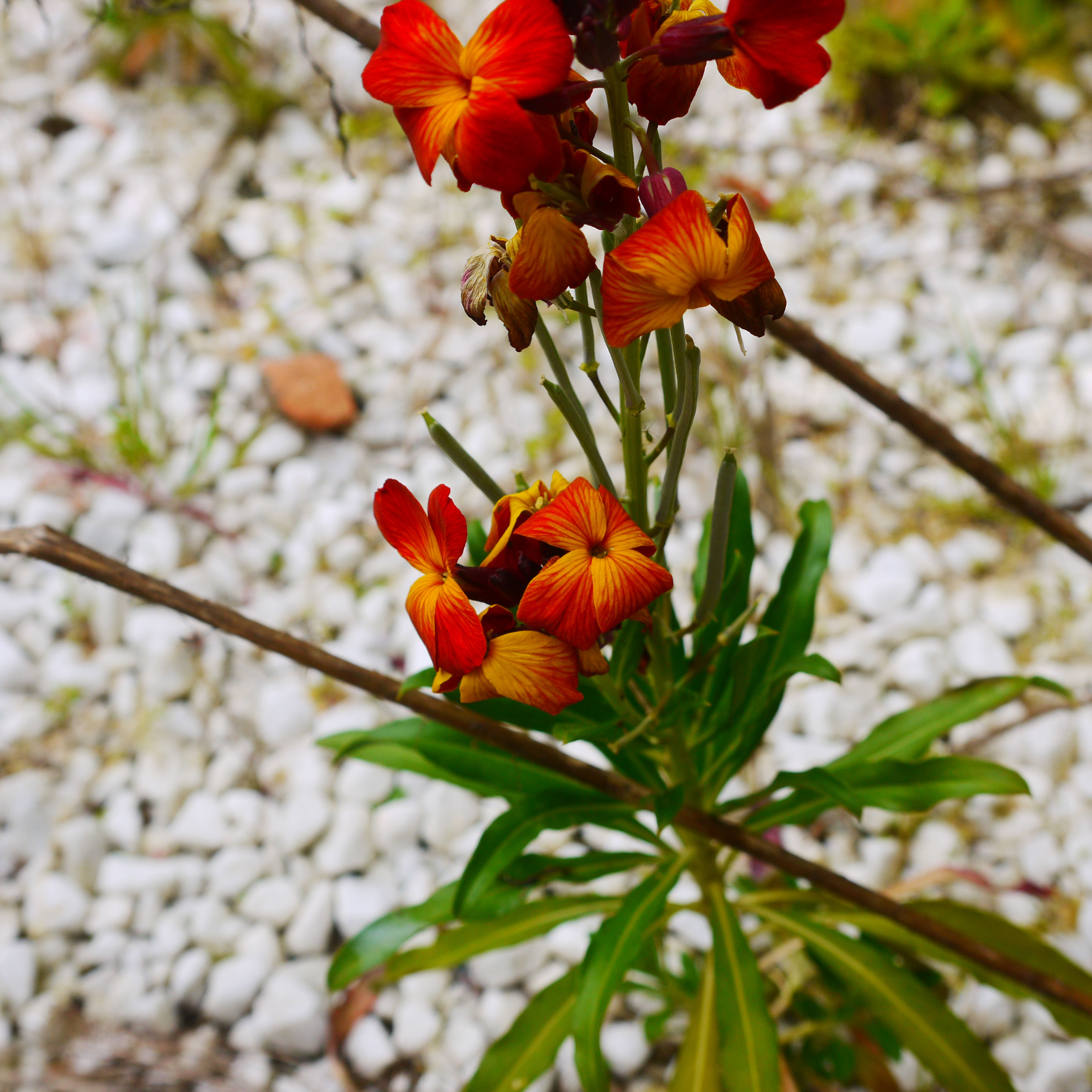 En bas de mon immeuble, en plein centre-ville de Toulouse, se trouve un rectangle de verdure et de graviers. J'y ai remarqué la présence de fleurs dont les couleurs chatoyantes ont immédiatement captées mon regard.