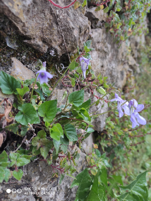 Quand on la voit on pense immédiatement "violette !" mais ce n'est pas si simple je m'en suis aperçue, il en existe quantités. Je penche pour Viola Pyrenaica en raison de la forme des feuilles et de leur implantation sur la tige mais vraiment sans certitude aucune. Il pourrait s'agir de viola reichenbachiana ou persicifolia selon que je fais une recherche par feuille ou fleur avec l'application Plantnet. Je ne me résigne pas à l'arracher à ce muret, où elle a trouvé si joliment son gîte, pour la disséquer plus avant ...