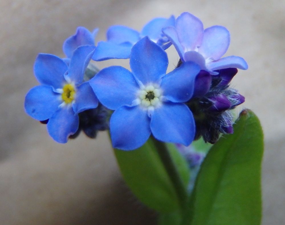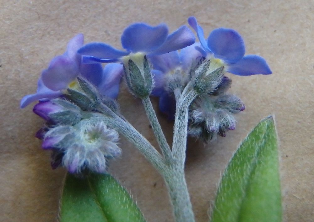 Ce myosotis débute sa floraison et l'inflorescence n'est pas totalement développée et les poils couvrant le calice des fleurs sont peu courbés à leur extrémité. La détermination n'est donc pas certaine : Myosotis sylvatica ?