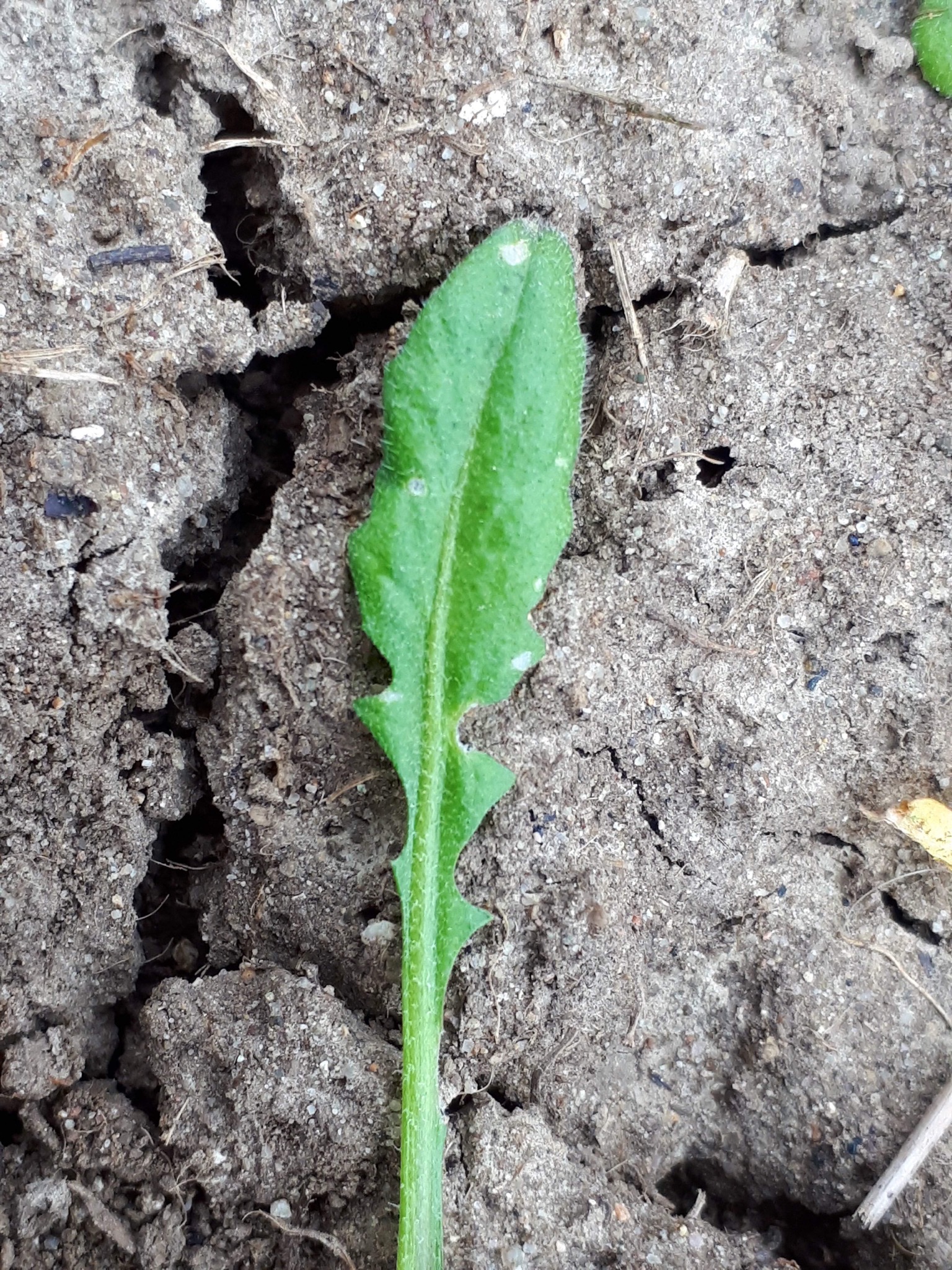 plante à fleurs jaunes, proche du pissenlit feuilles dentelées rassemblées en étoile au niveau du sol, tige poilue d'une vingtaine de centimètres portant une inflorescence de plusieurs fleurs jaunes.