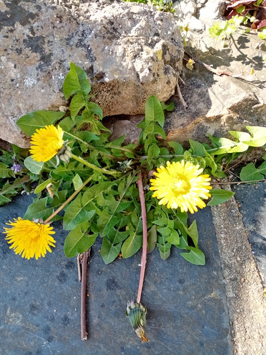 J'ai trouvé cette pousse , entre le goudron du sol et le mur. Au premier abord j'imagine que c'est un Pissenlit (Taraxacum officinale). Les feuilles en avaient l'odeur en tout cas