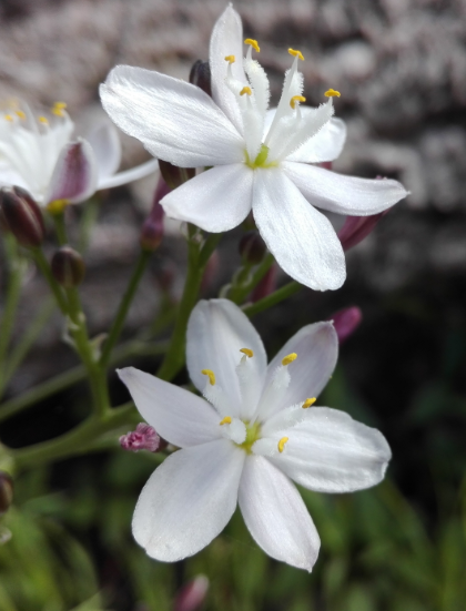 La fleur est toute petite et rare proportionnellement à ses feuilles, avec 5 pétales roses bien découpées dont le bout est légèrement plus large que la base.
