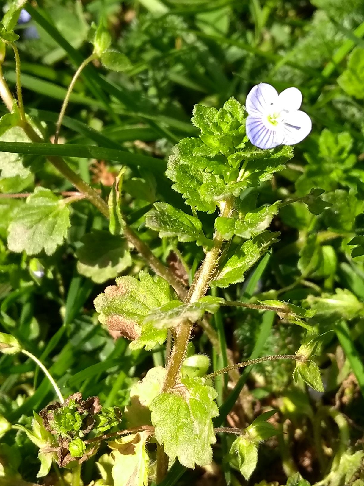 Dans mon jardin marseillais 100% non entretenu, c'est un joyeux bazar. Cette plante (photos prises avec le smartphone) y apparaît ça et là... C'est marrant j'ai pu vérifier que les feuilles sont bien 2 fois plus grandes lorsque la plante pousse à l'ombre, et hop : une application du cours !
